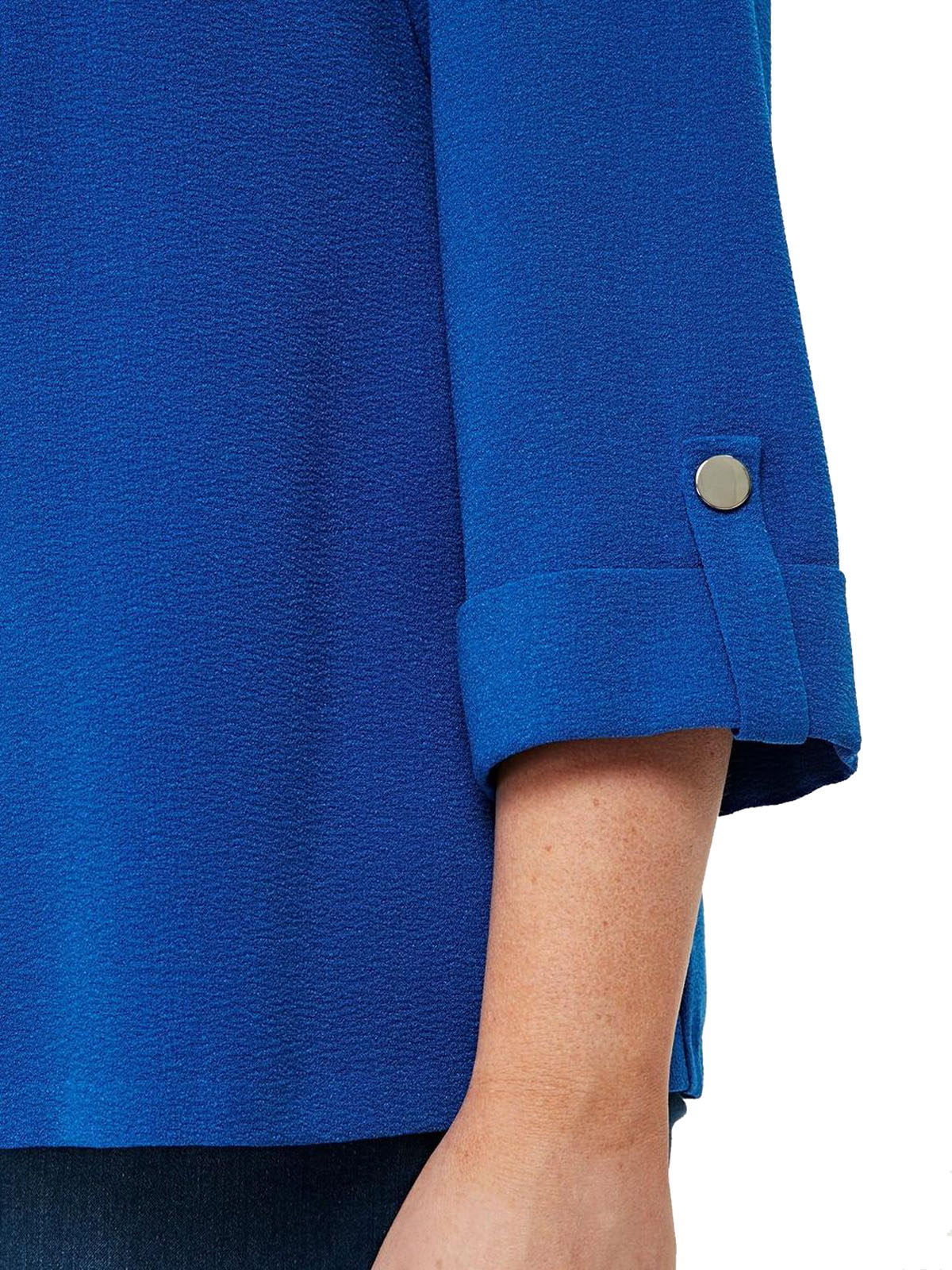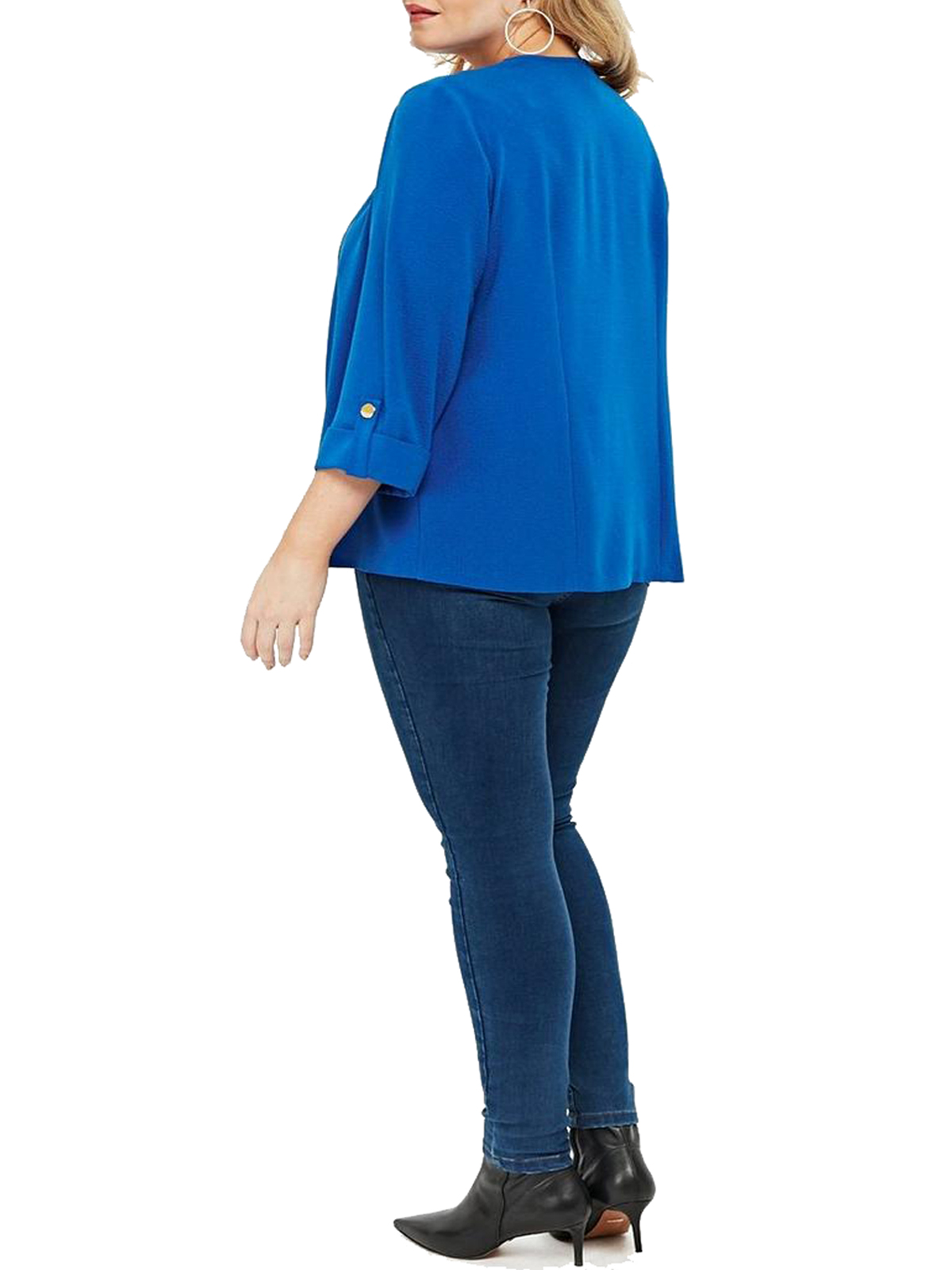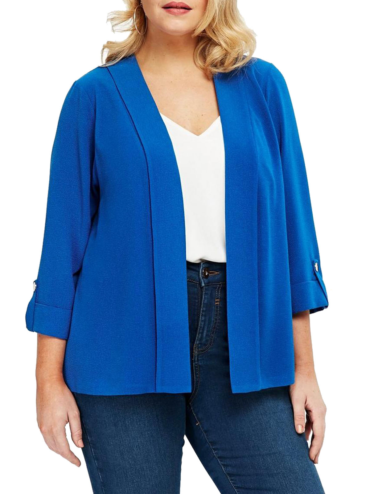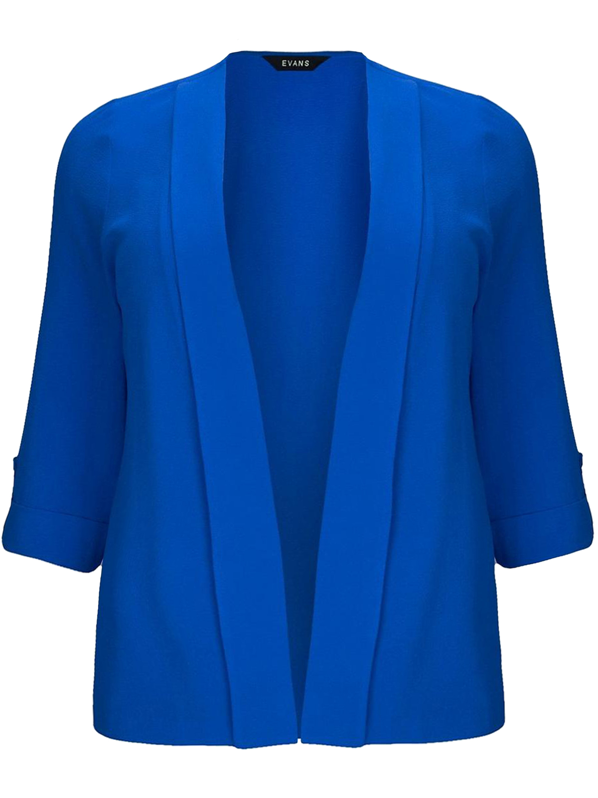 Cobalt blue soft textured open front jacket featuring a silver stud detail on the 3/4 sleeve cuff is perfect for finishing off either a work outfit of trouser or dressed up for an evening look with a black dress and heels. Length: 28inches/70cm.