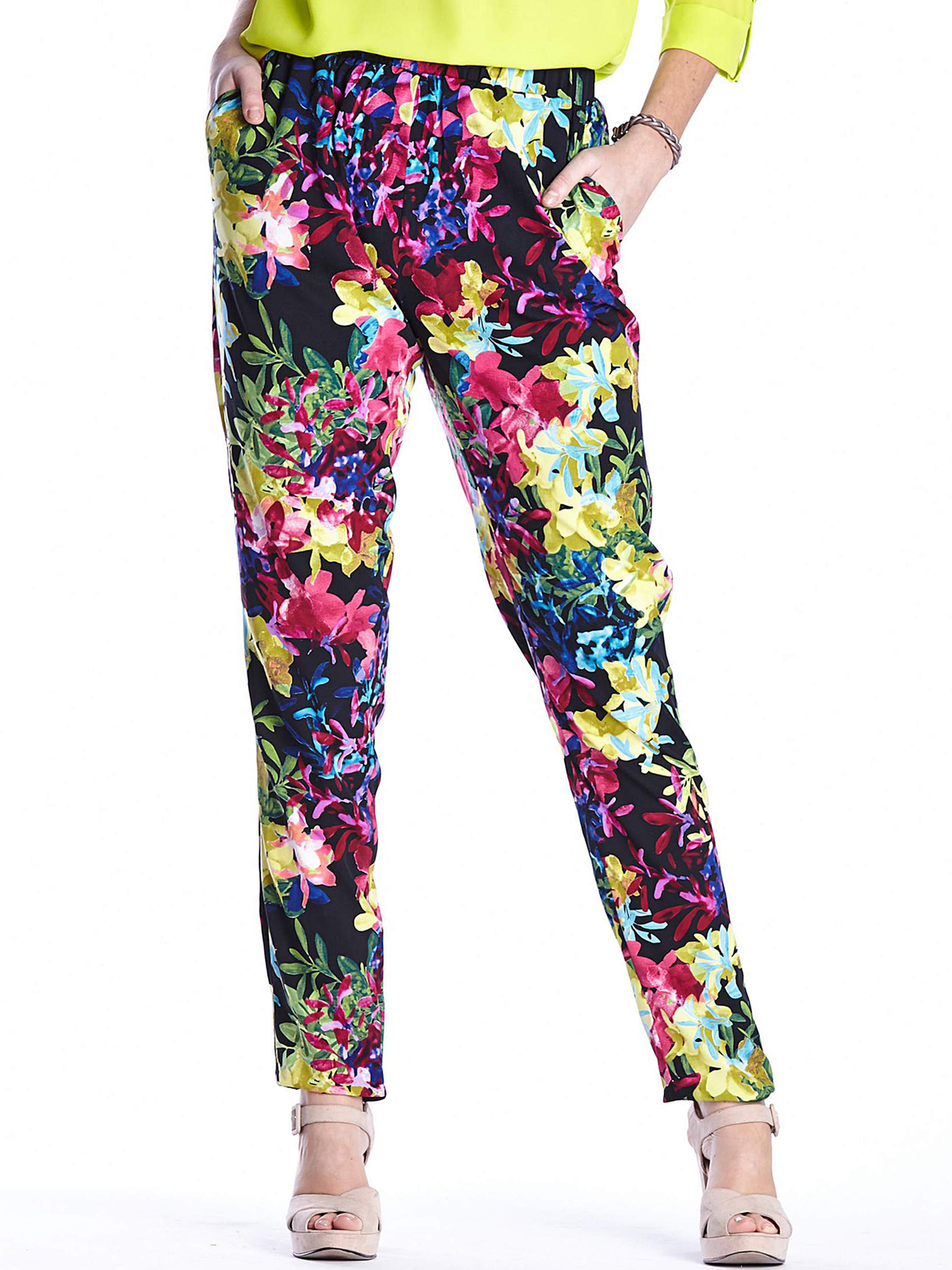 Update your wardrobe with these gorgeous print tapered trousers. Pull-on style with elasticated waist and side pockets.
