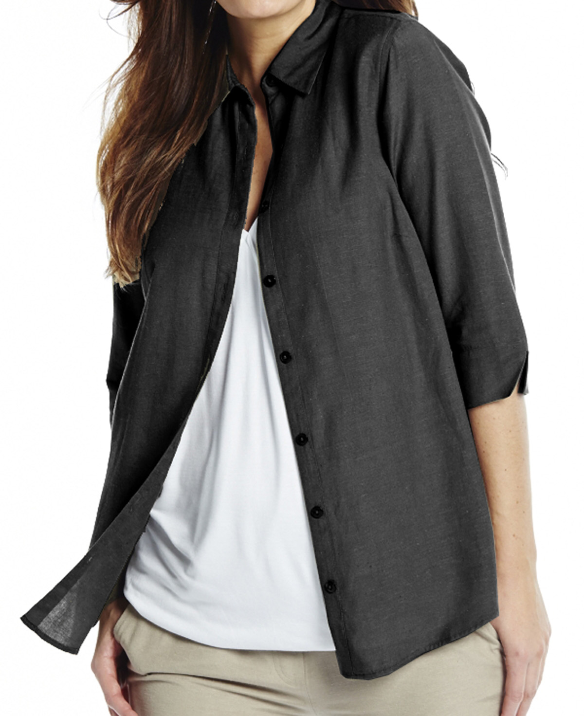 Black 3/4 Sleeve Linen Blend Blouse