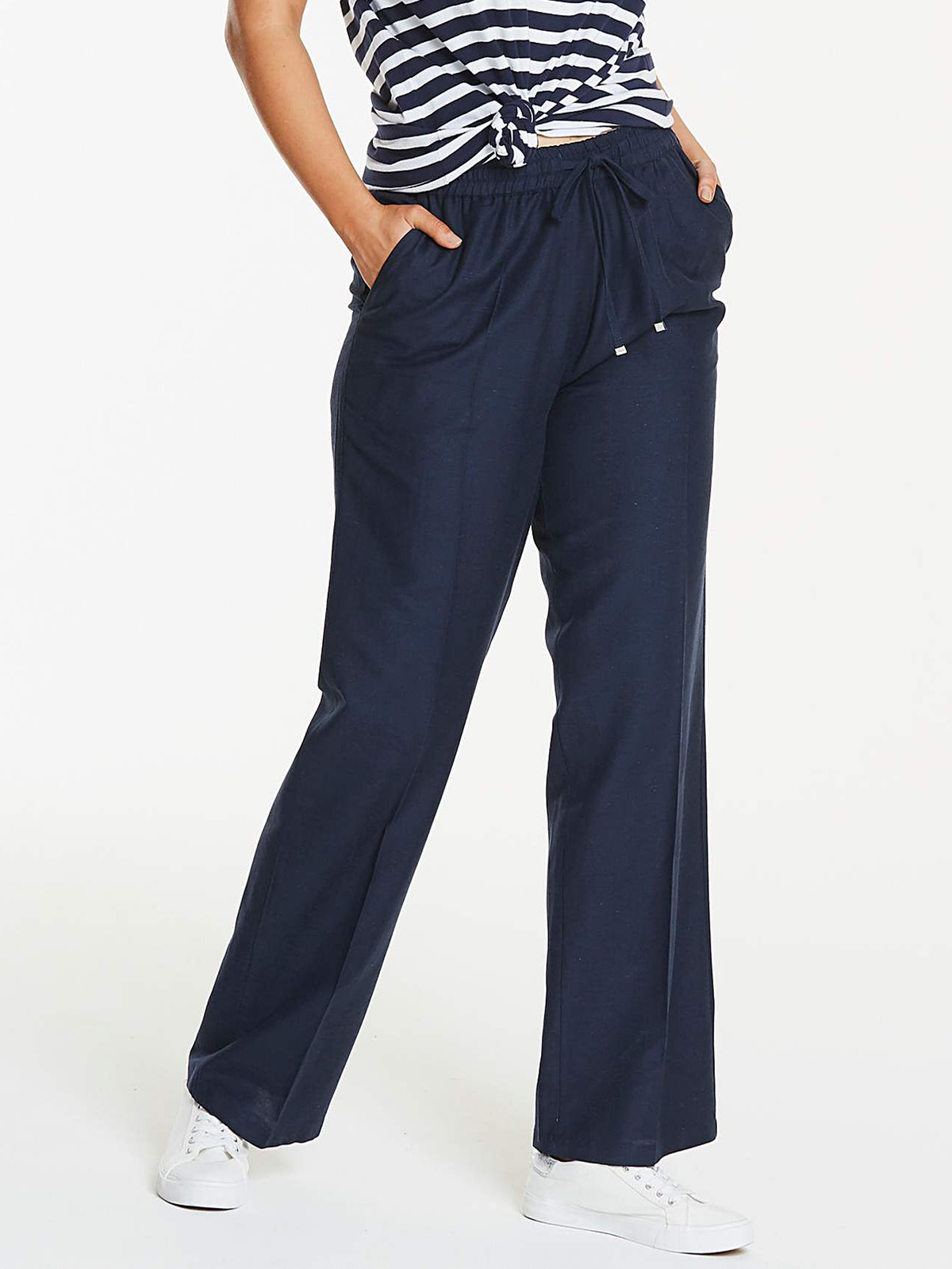 Nothing says effortless summer style like a pair of gorgeous linen trousers. Complete with elasticated waist with draw-cord The straight leg shape is simple yet flattering and the pocket detail adds a practical touch.