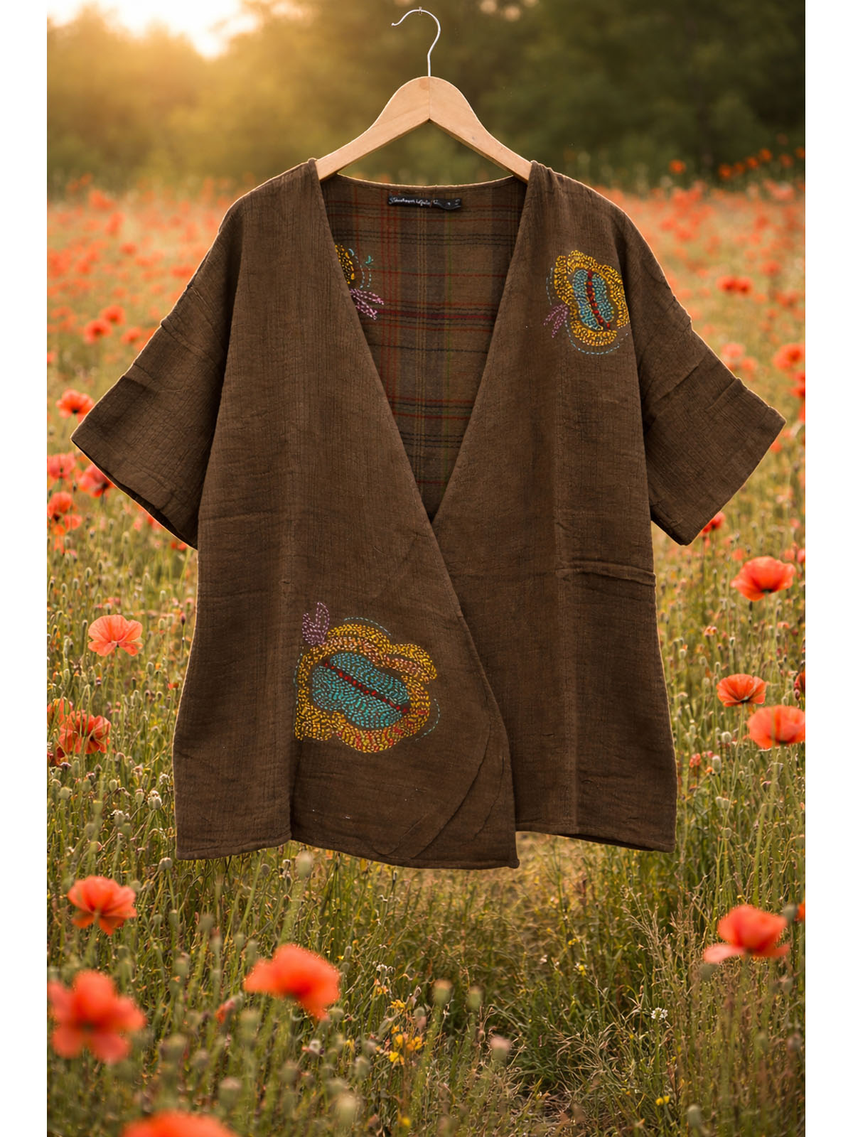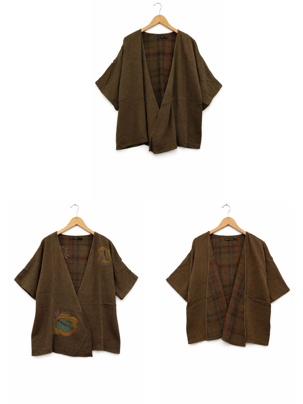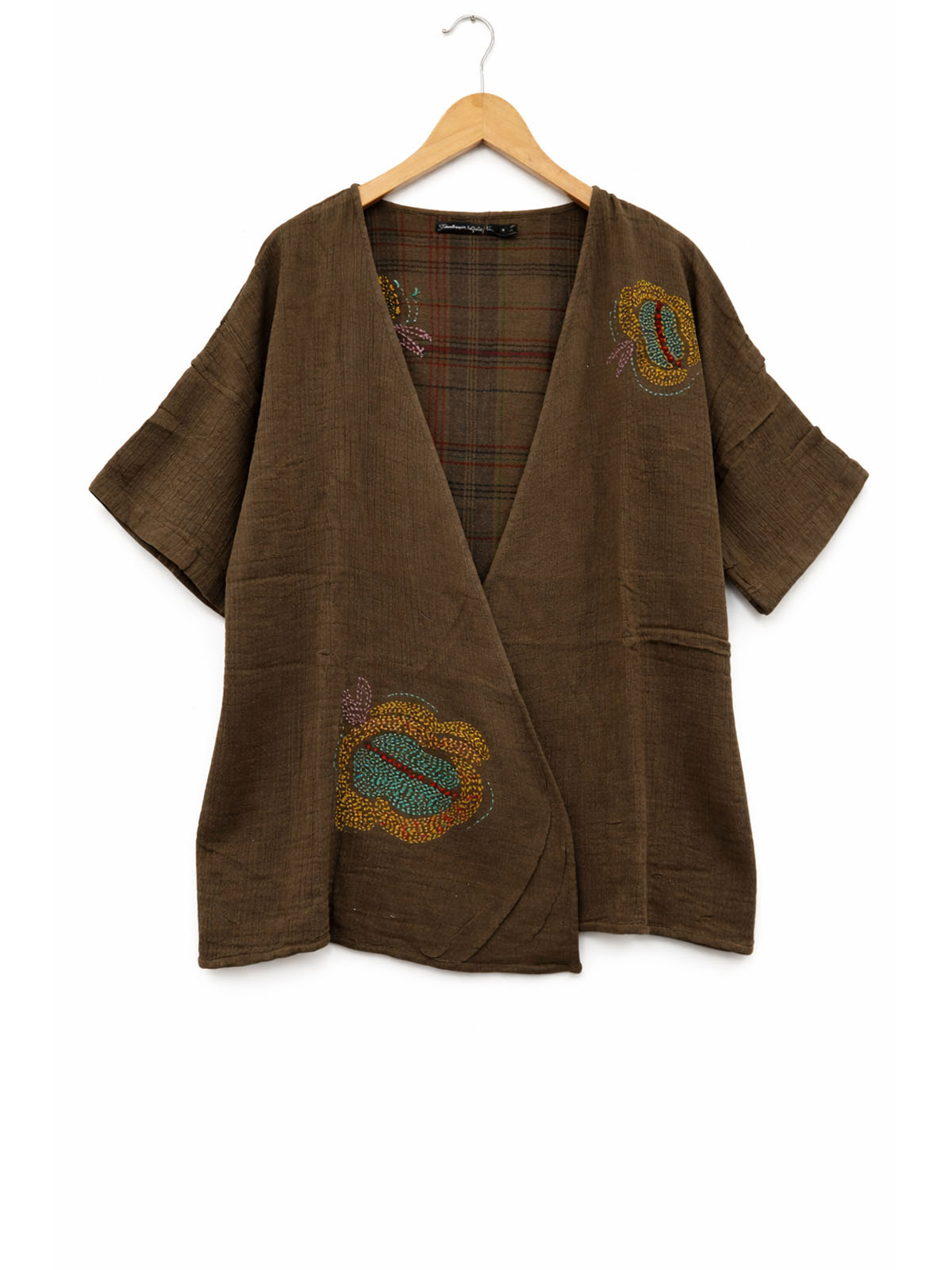 Brown Embroidered "glen check" lined open jacket