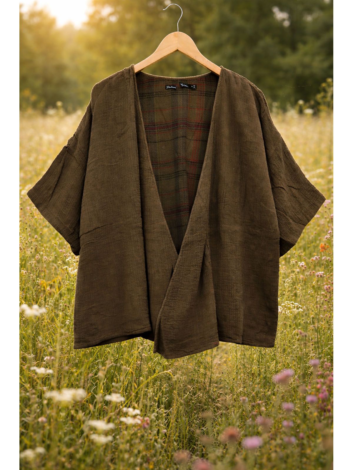 Brown "glen check" lined open jacket