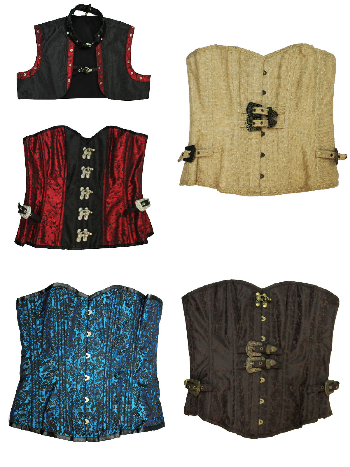 A mixed pack of corsets with a variety of styles, colors and lengths.