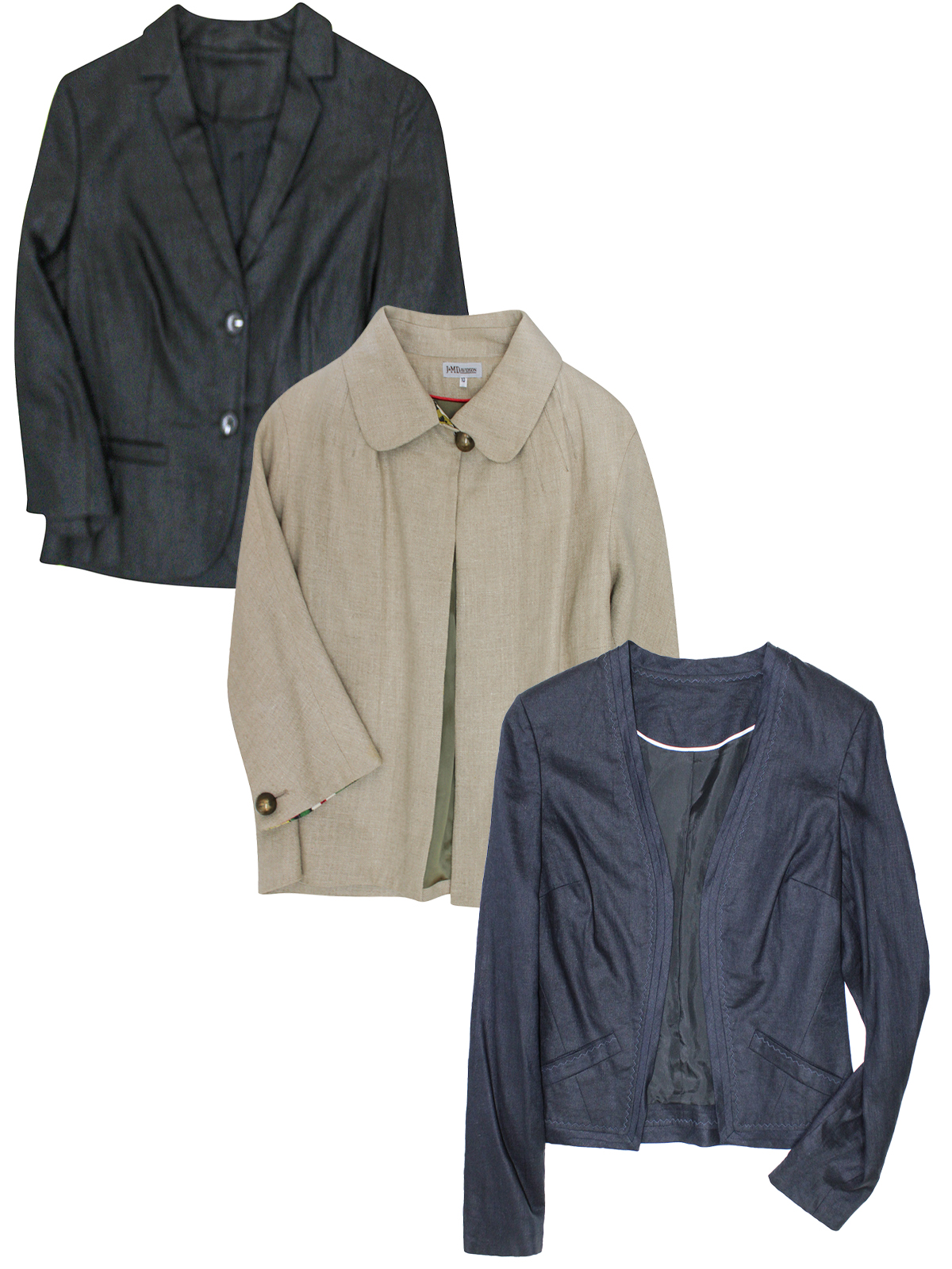 A mixed pack of jackets with a variety of styles, colors and lengths.