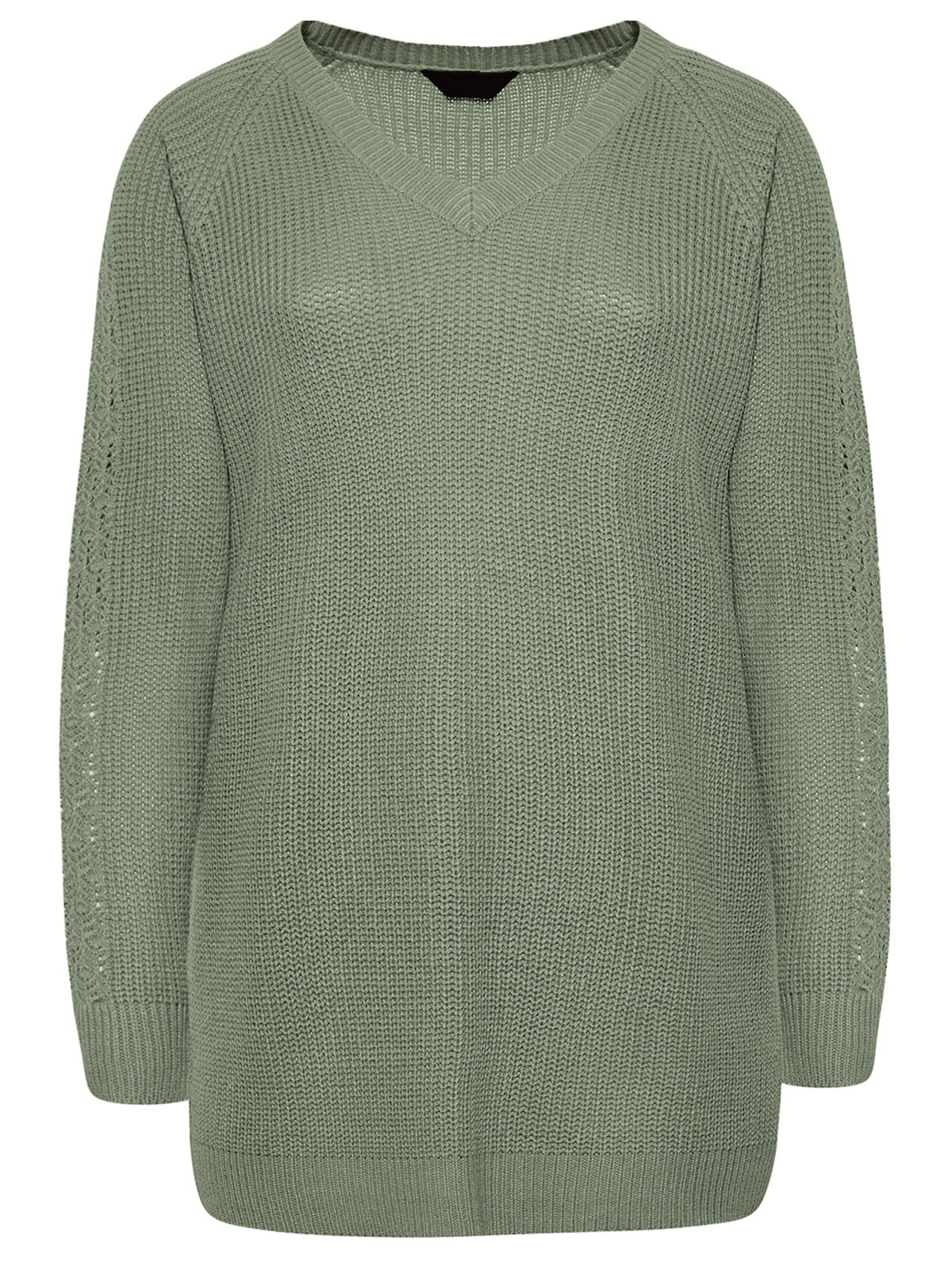 Sage pointelle sleeve v-neck knitted jumper |