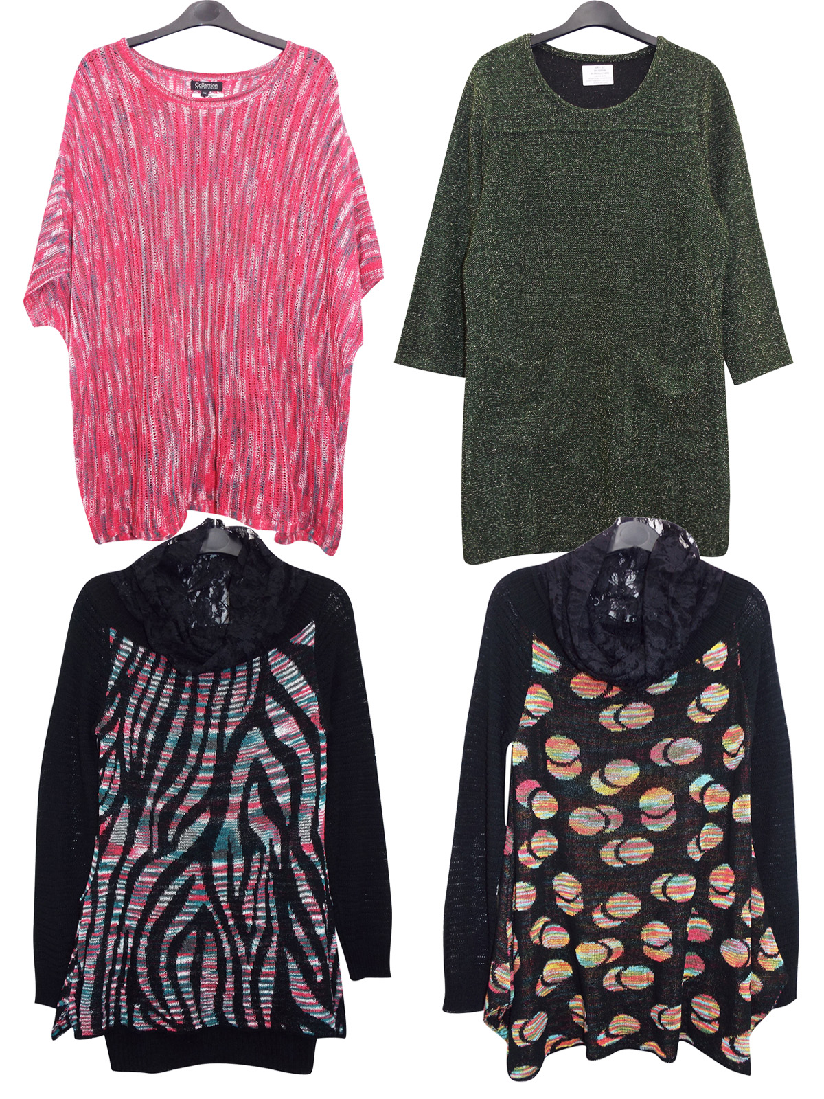 A mixed pack of ladies tops with a variety of styles and colors and lengths.