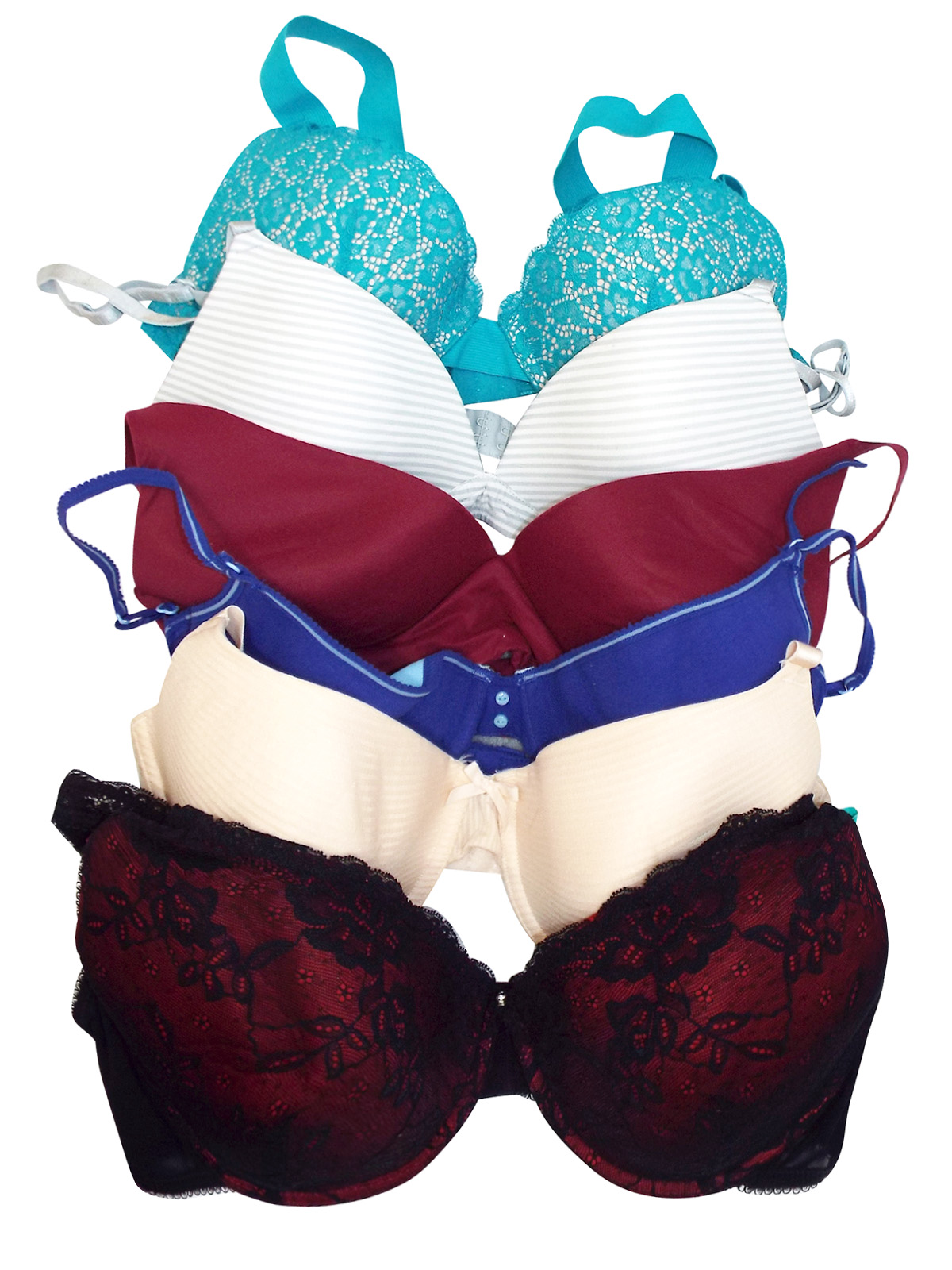A mixed pack of bras with a variety of styles and colors.
