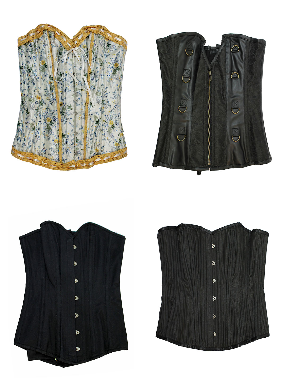 A mixed pack of corsets with a variety of styles, colors and lengths.
