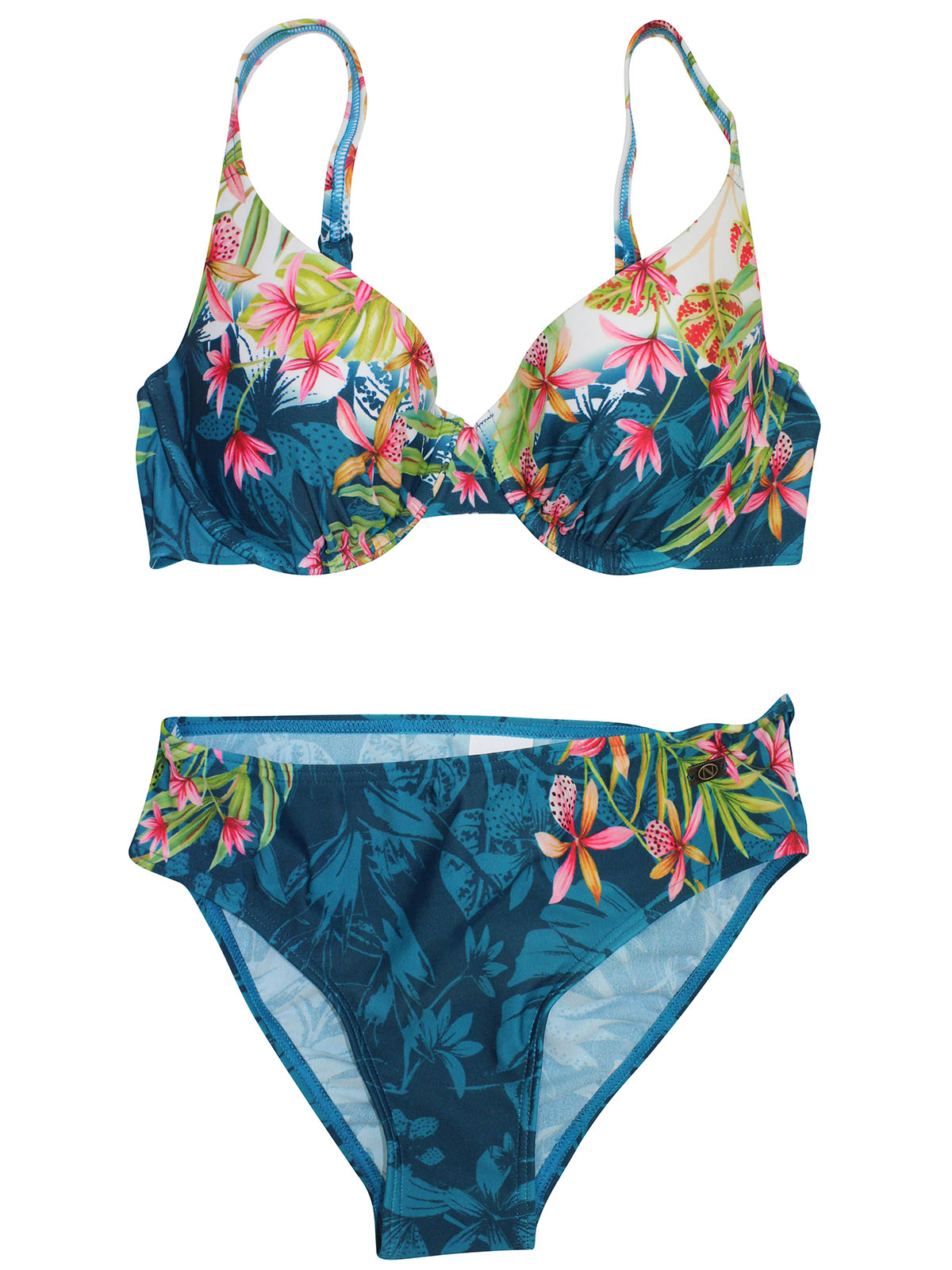 Padded Bikini Set Teal Floral Print |