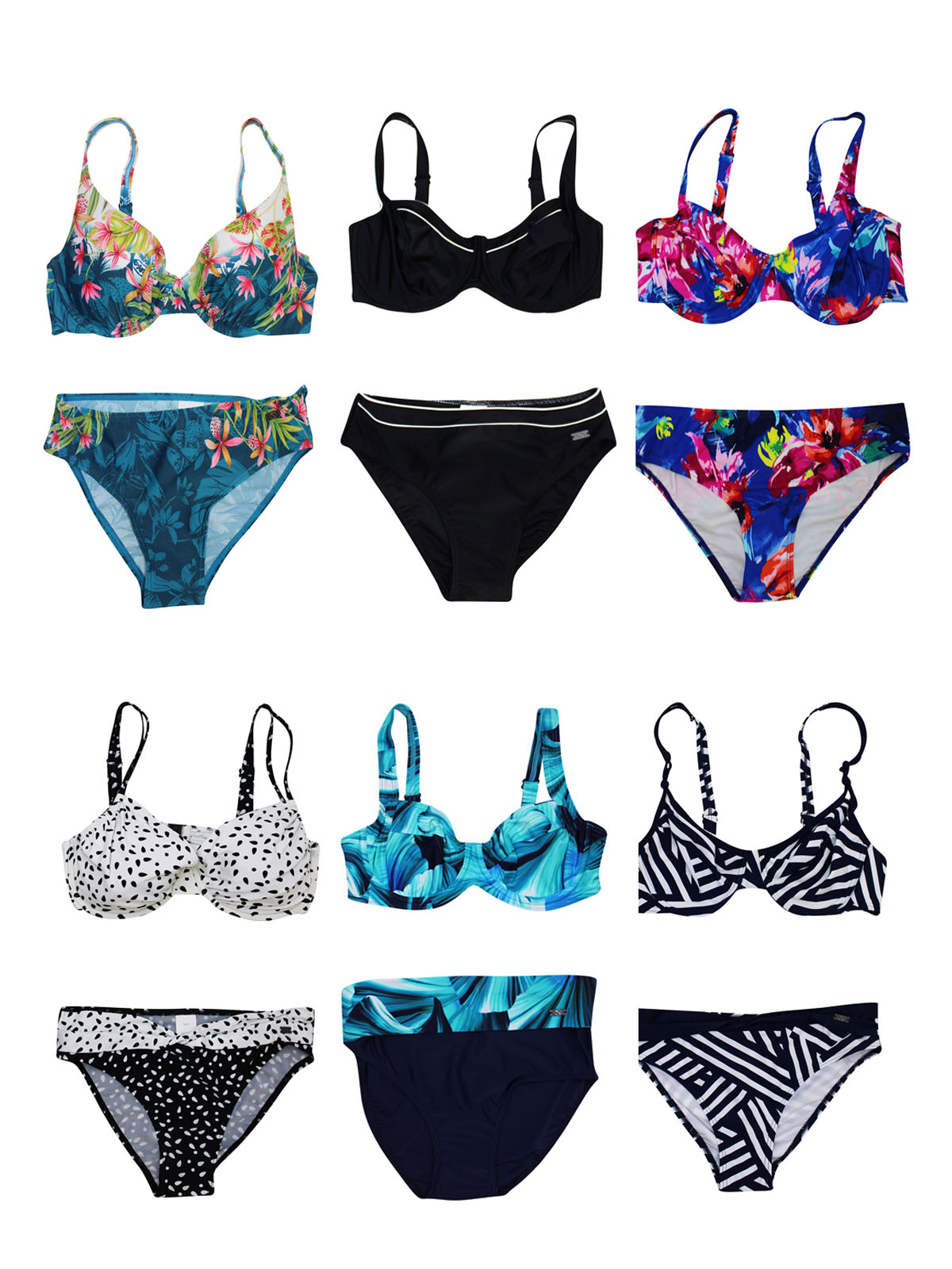 A mixed pack of bikini sets with a variety of styles and colors.