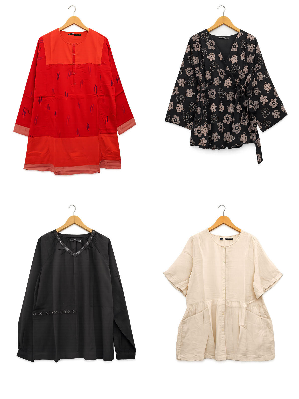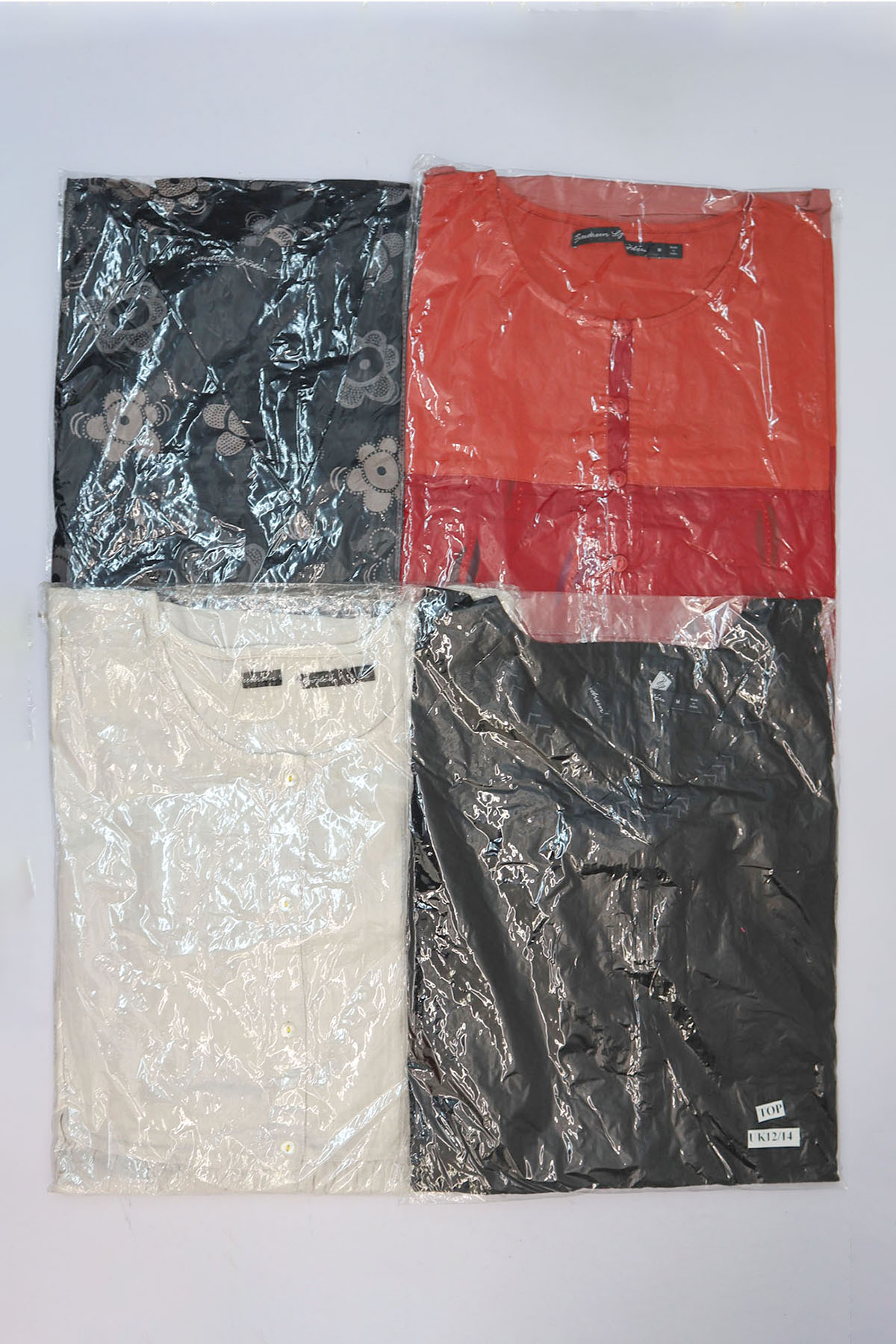 A mixed pack of tops and tunics in an assortment of styles, lengths, colours and prints.