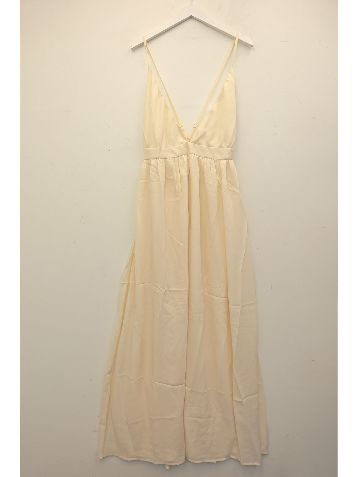 1 Light yellow/lemon sleeveless strappy maxi dress with a V-neckline.