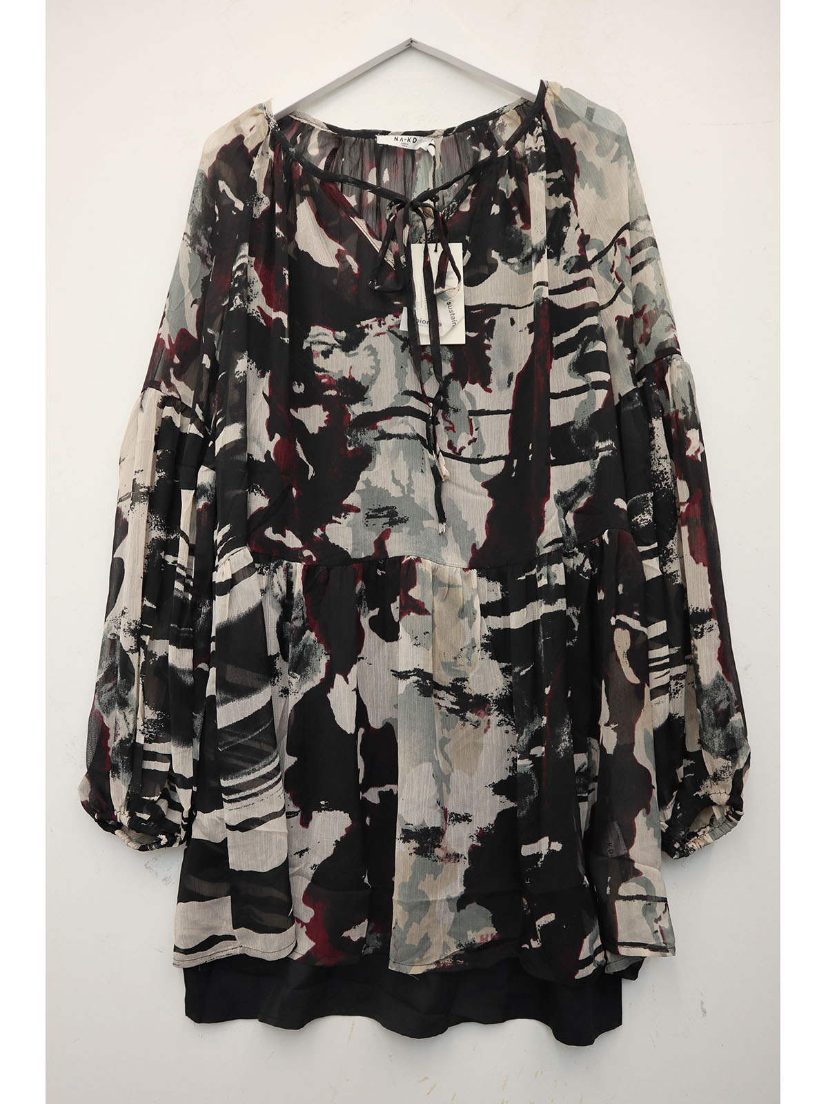 1 Abstract Print Tunic dress, Long sleeves, notch neck, and oversized abstract pattern.