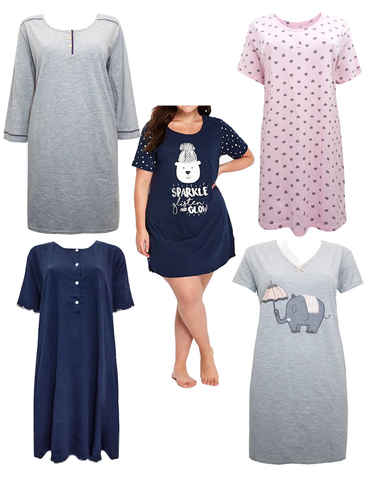 A mixed pack of ladies nightdresses with a variety of styles and colors and lengths.