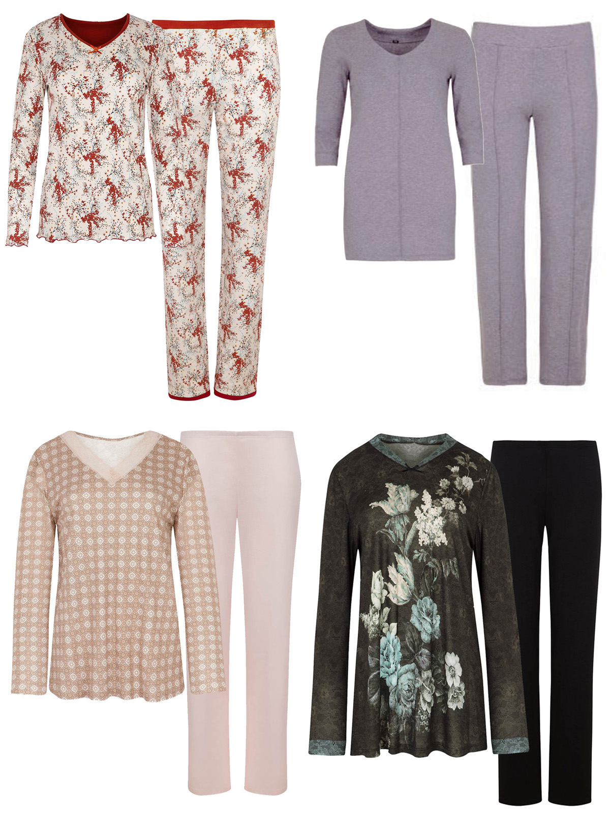 A mixed pack of ladies nightwear with a variety of styles and colors and lengths.