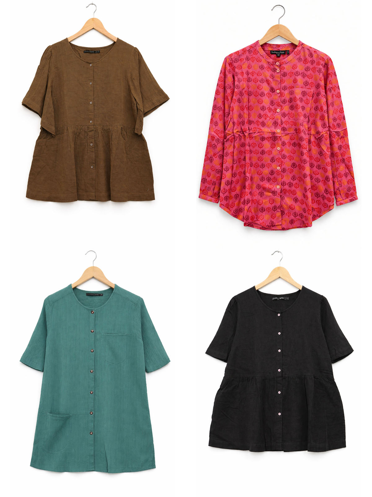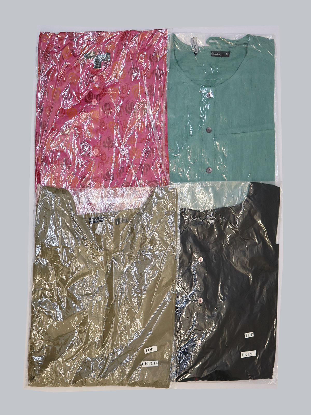 A mixed pack of tops and tunics in an assortment of styles, lengths, colours and prints.