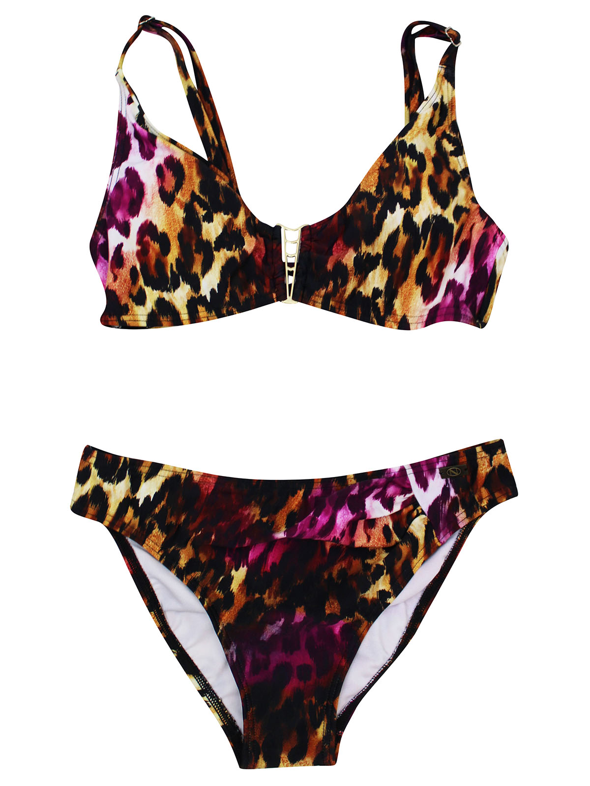 Triangle Removable Pad Bikini Set - Brown pink animal print |