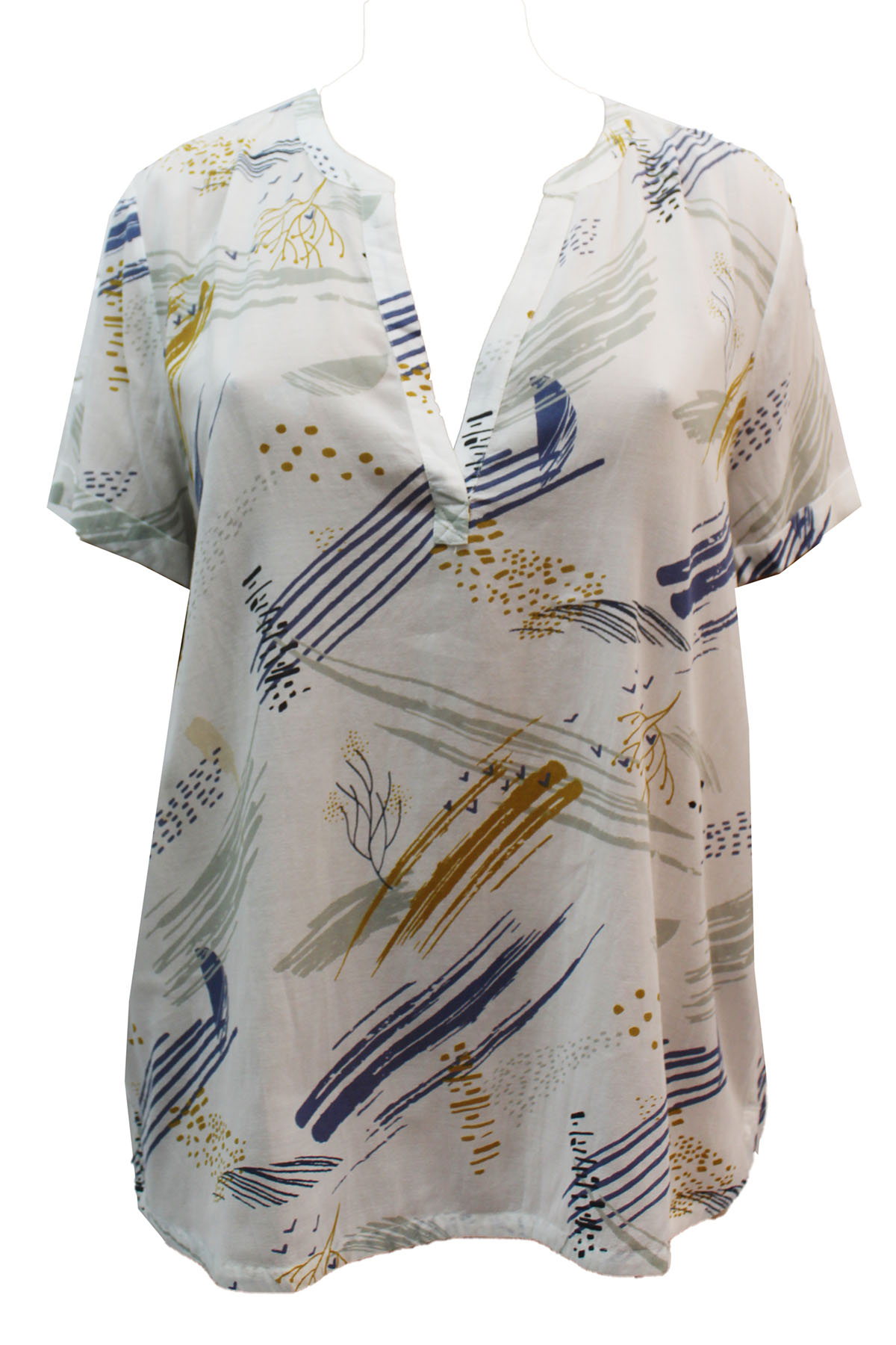 White mix notch neck short sleeve top |
