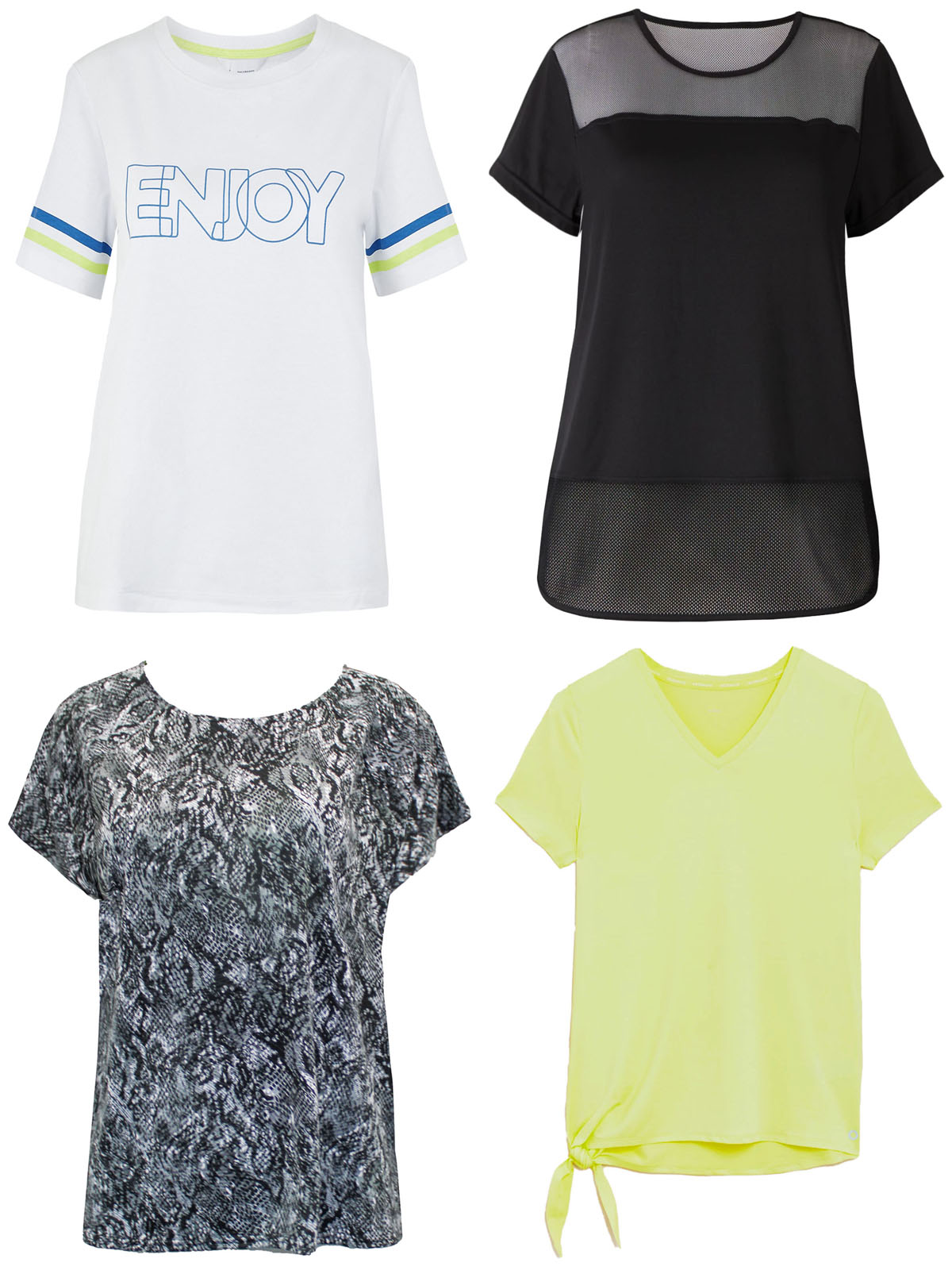 A mixed pack of short sleeve tops with a variety of styles and colors and lengths.
