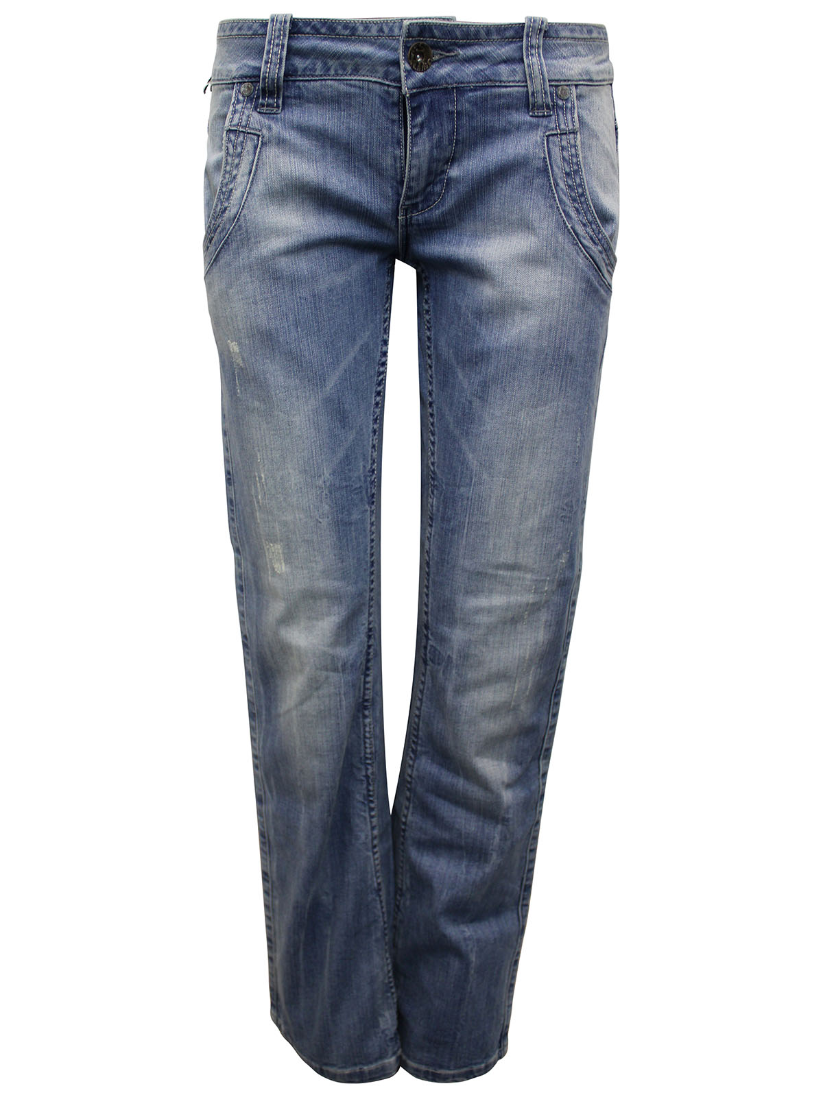 Bleach wash blue straight leg denim jeans. Length 31in |