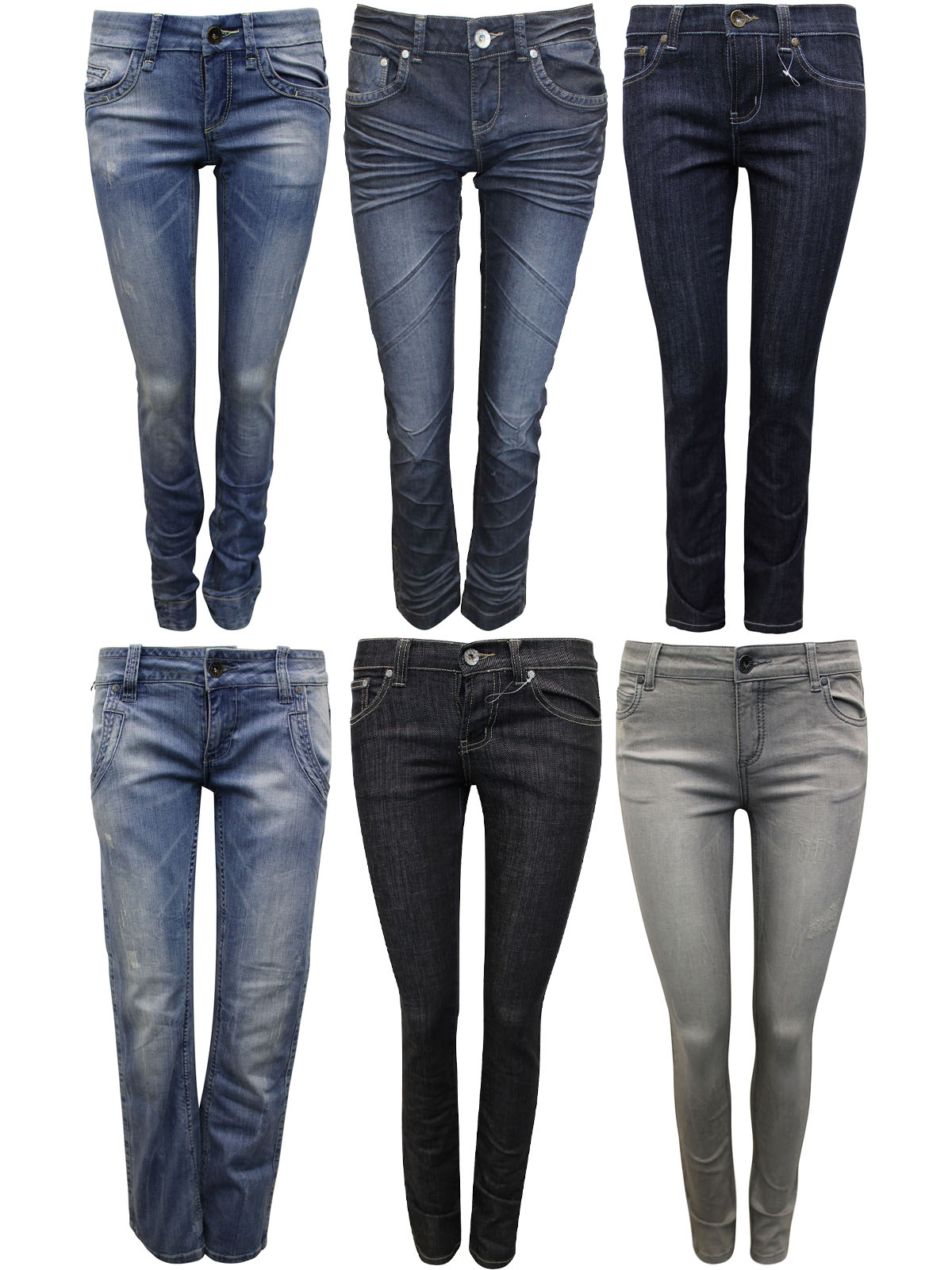 A mixed pack of jeans with a variety of styles and colors and lengths.