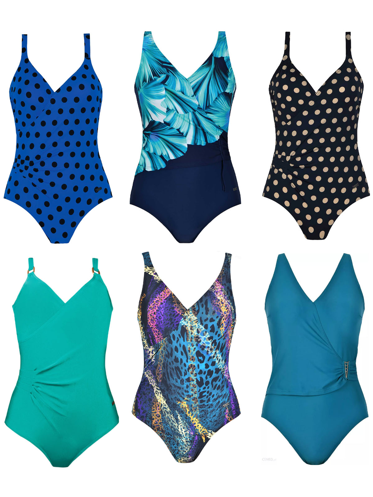 A mixed pack of swimsuits with a variety of styles, colors and lengths.