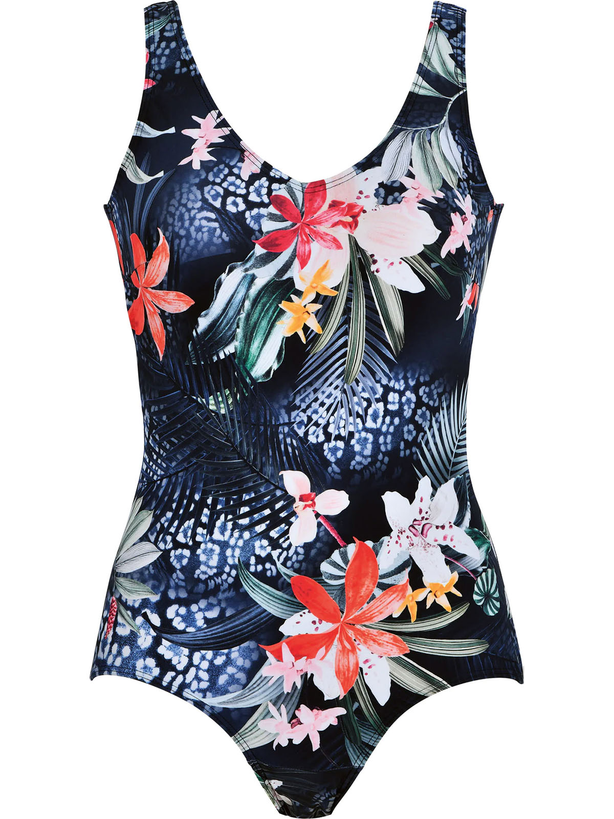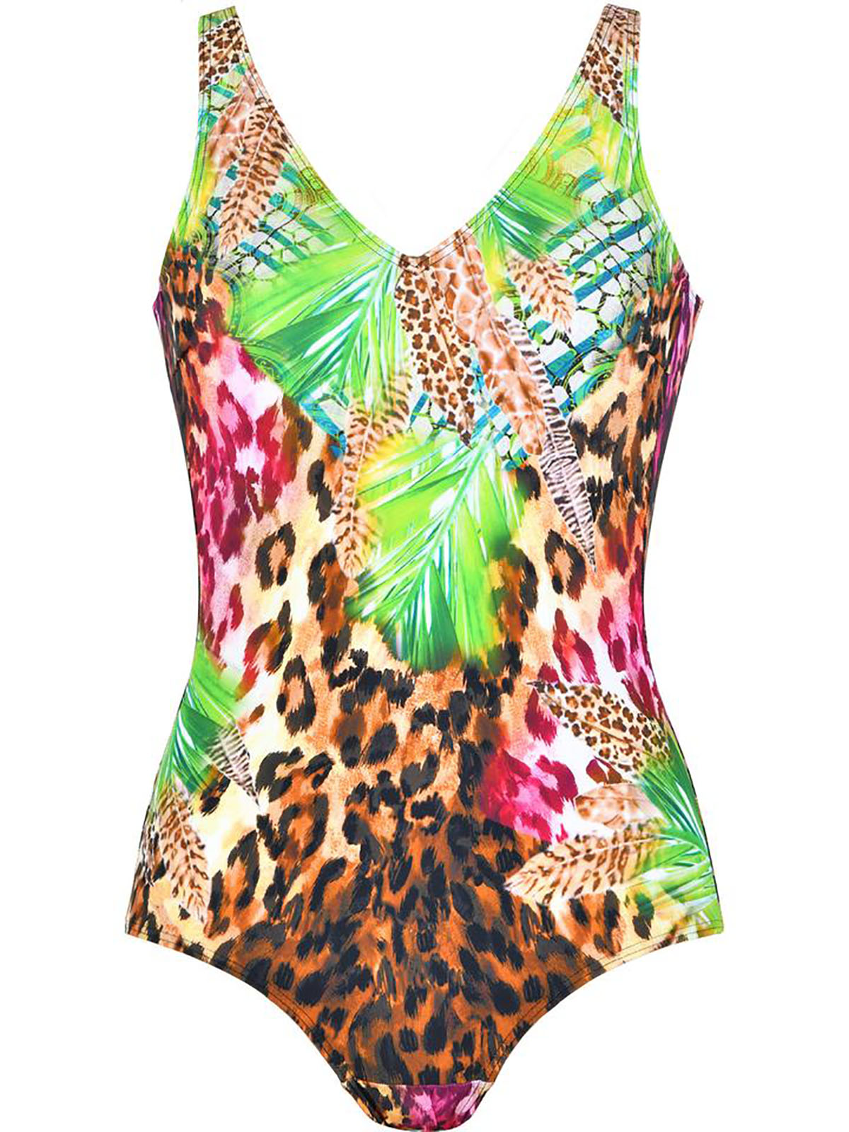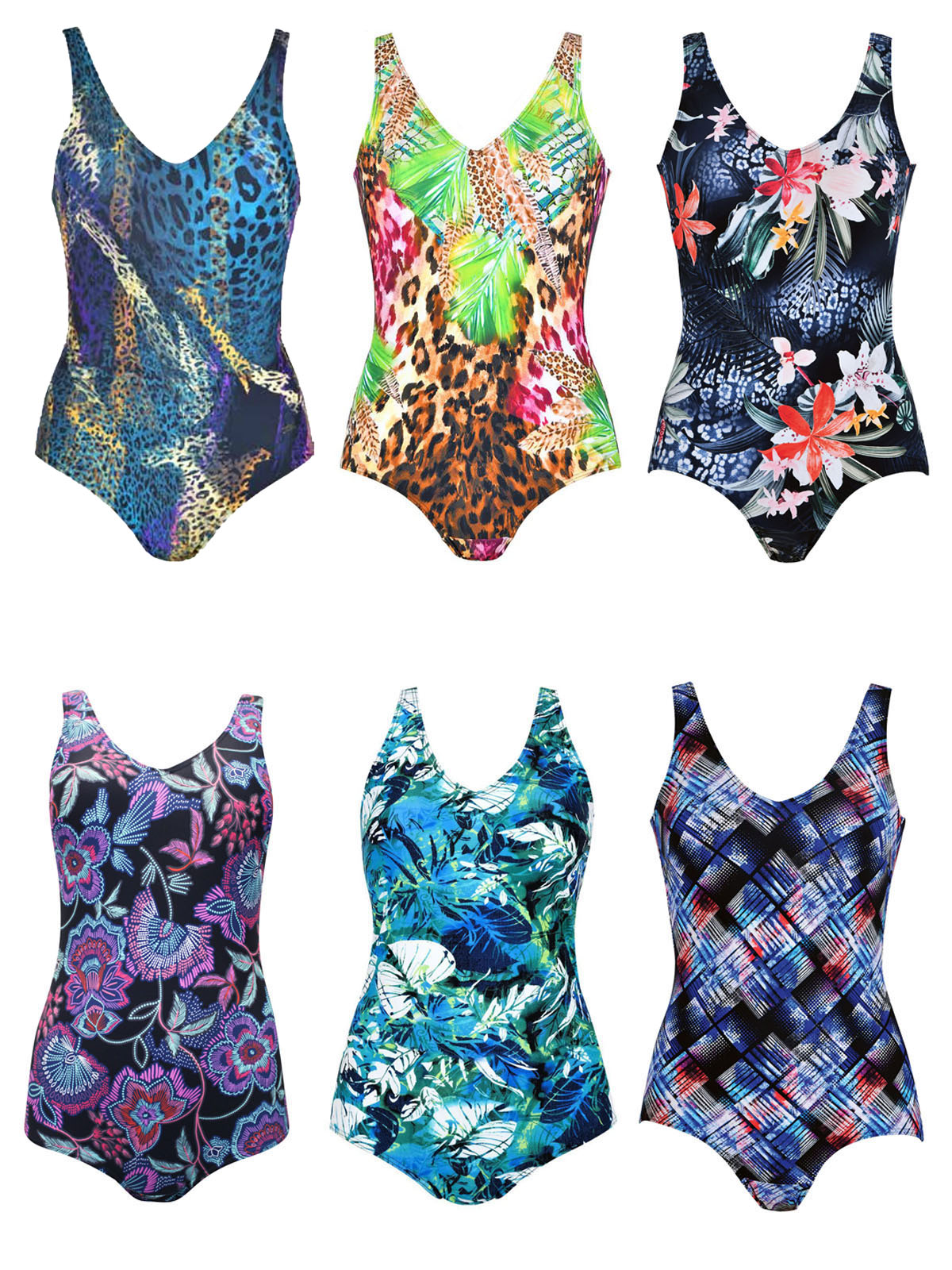 A mixed pack of swimsuits with a variety of styles, colors and lengths.