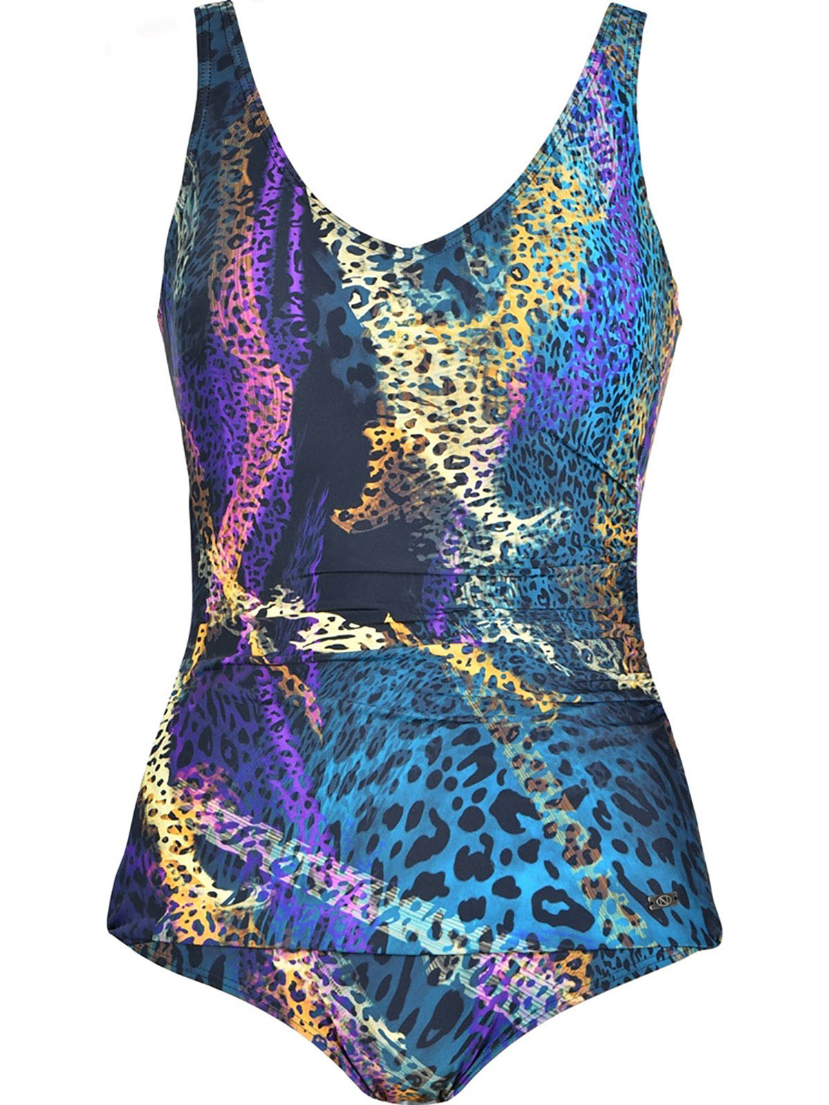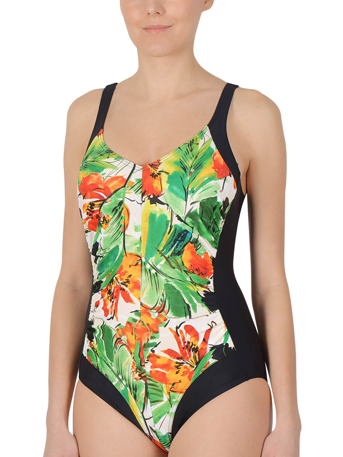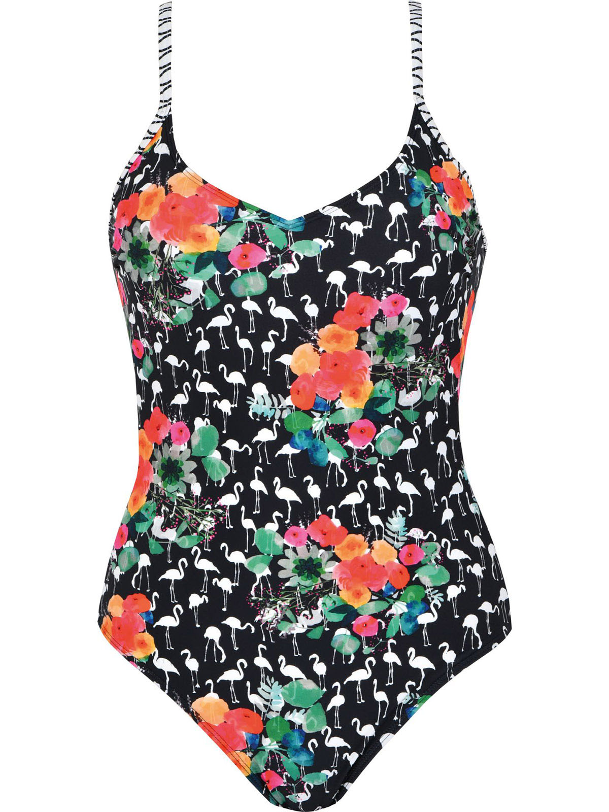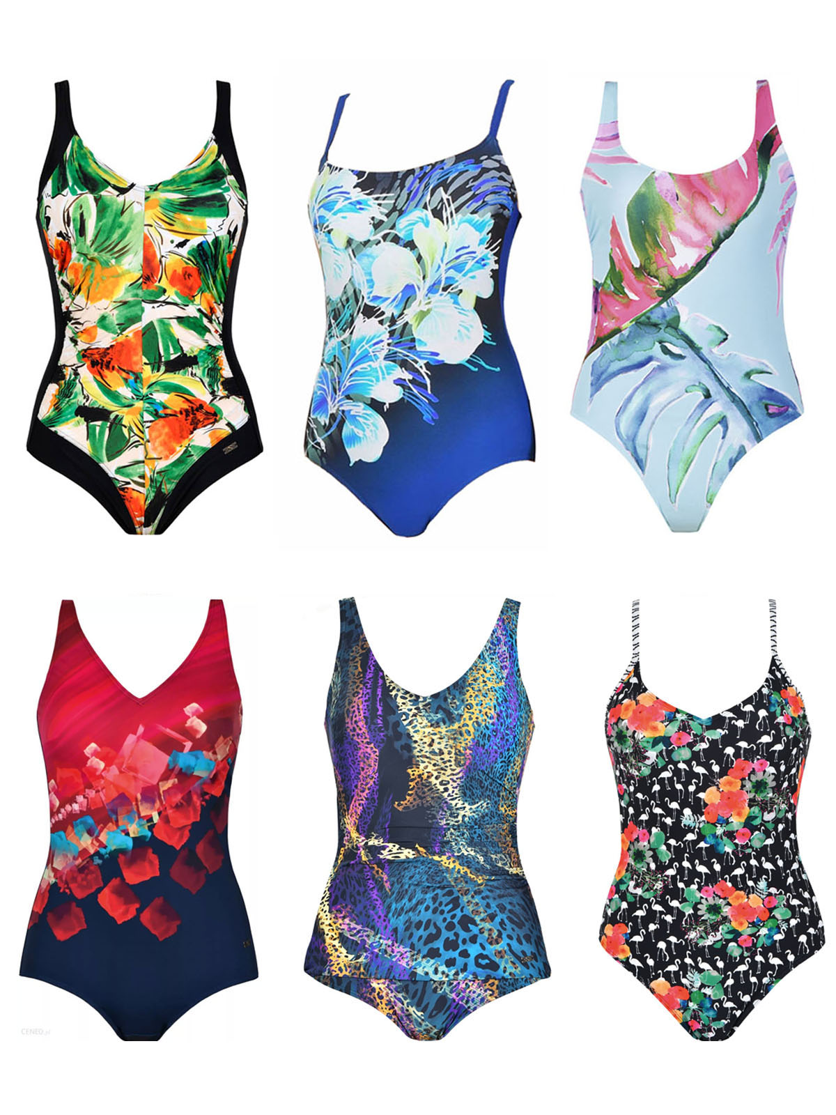 A mixed pack of swimsuits with a variety of styles, colors and lengths.