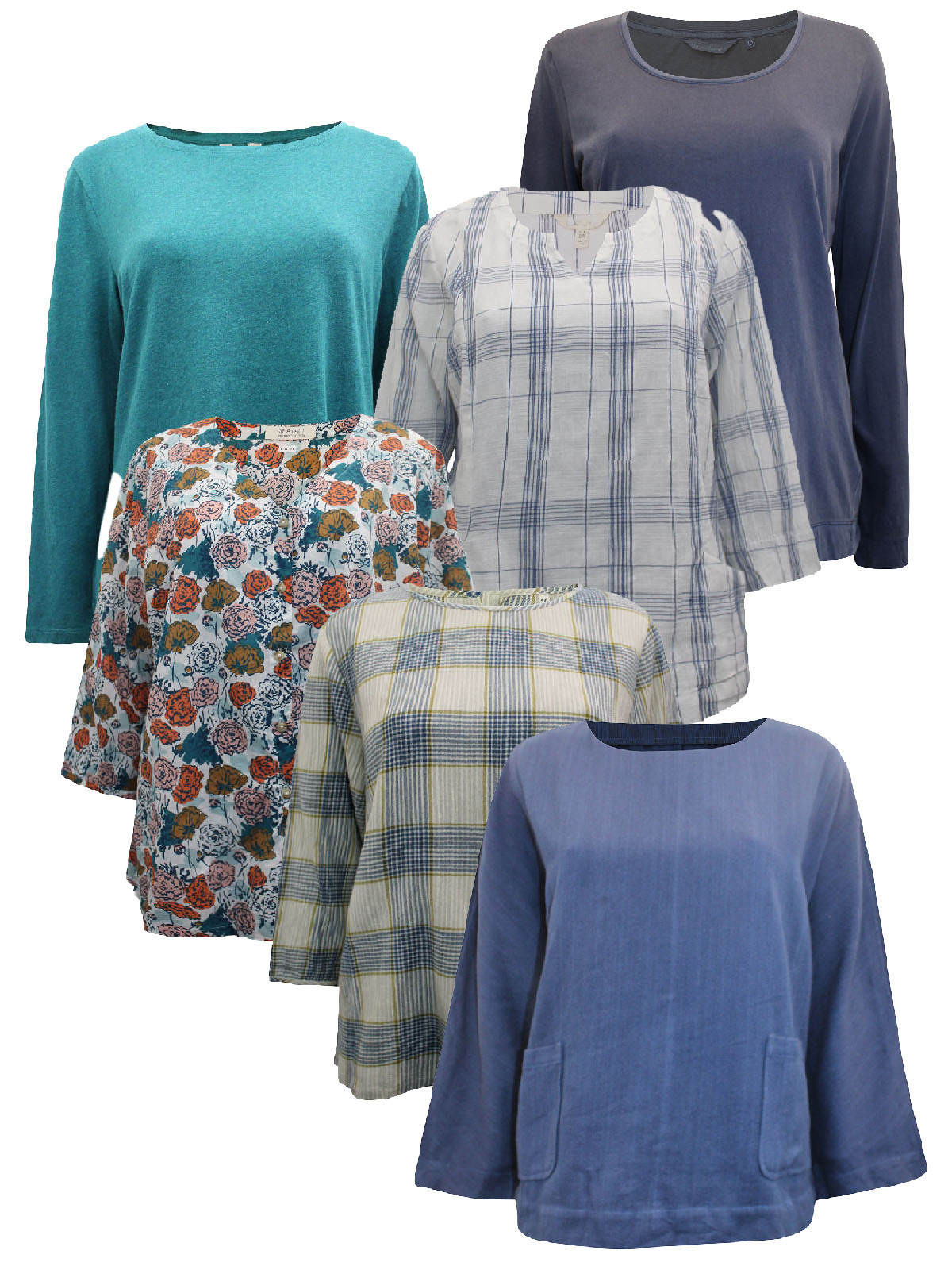 A mixed pack of tops with a variety of styles, colors and lengths.