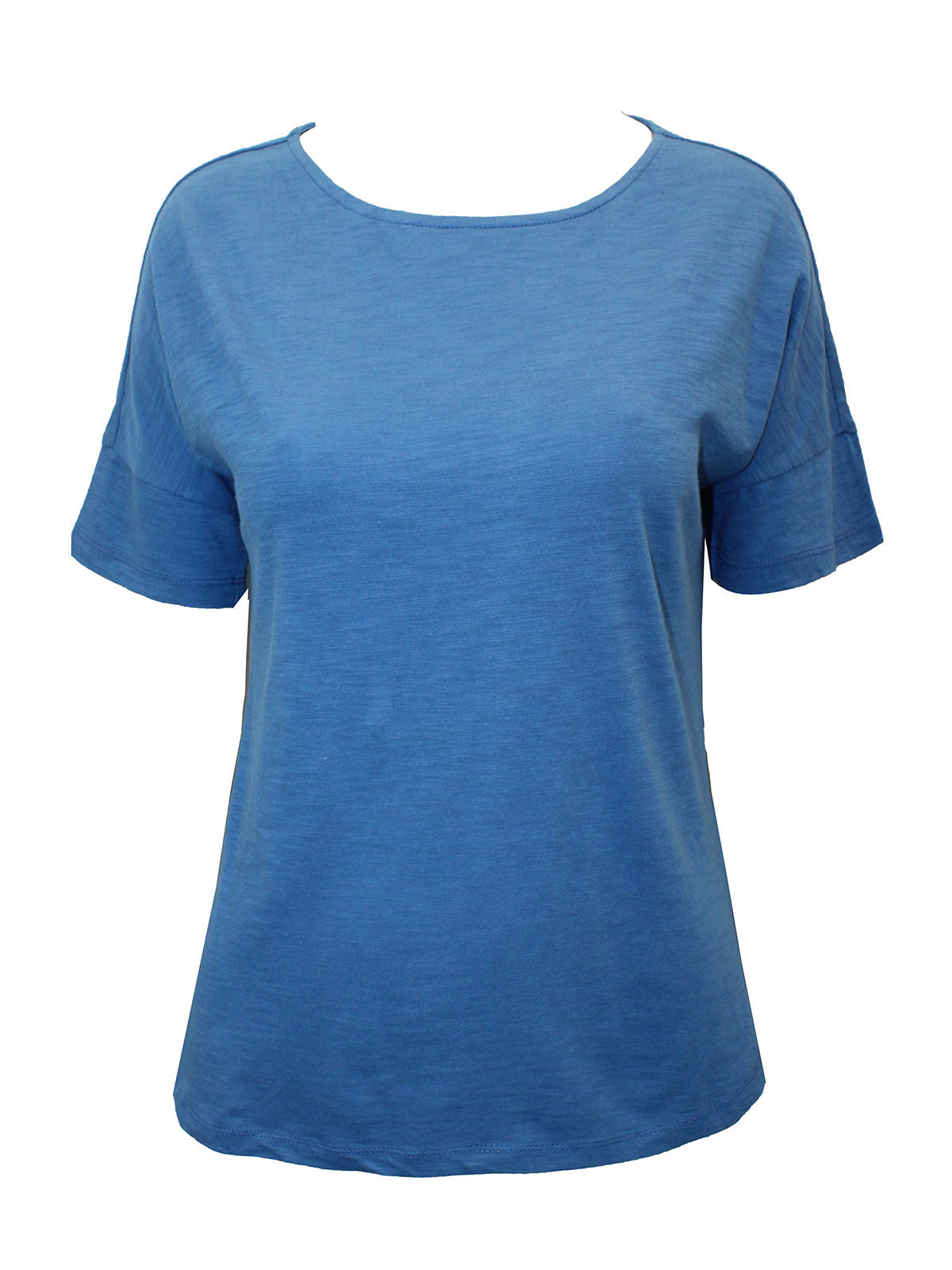 Blue scoop neck curved hem top |