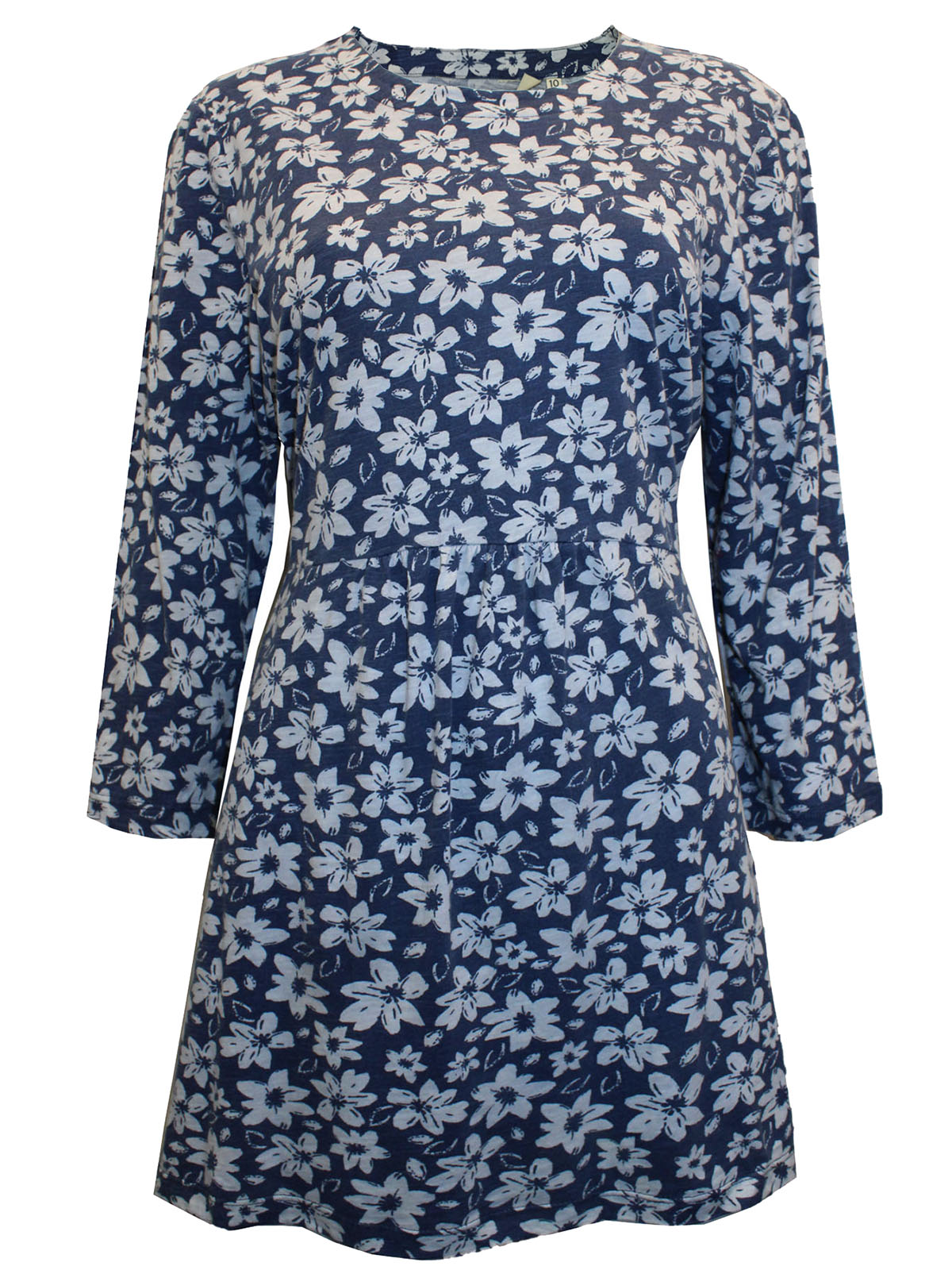 Blue floral tie waist 3/4 sleeve tunic |