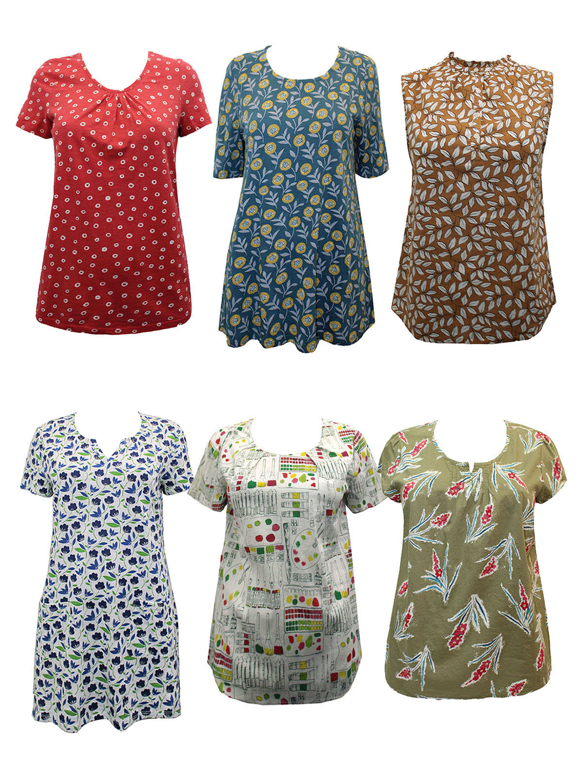 A mixed pack of tops with a variety of styles, colors and lengths.