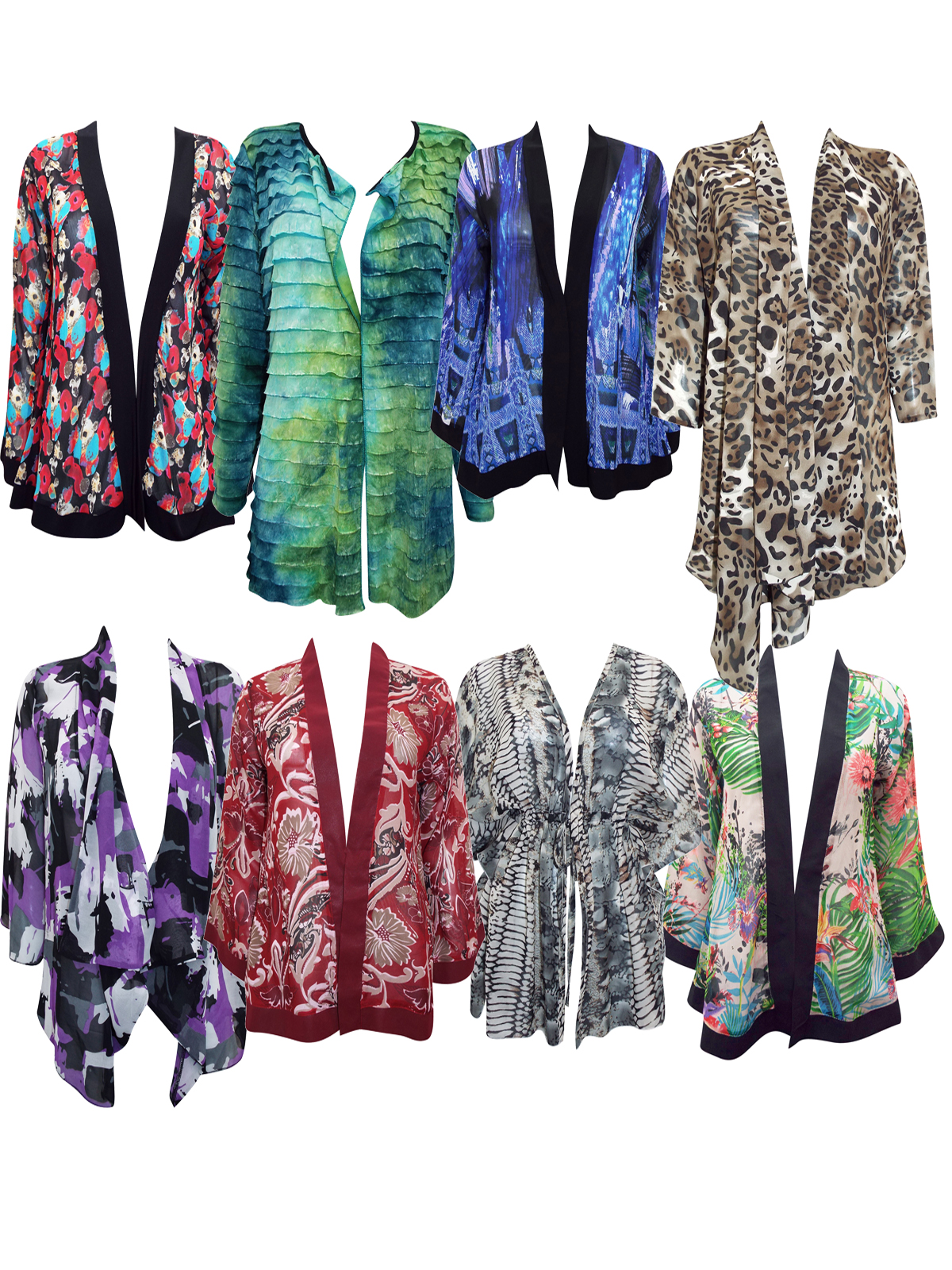 A mixed pack of shrugs with a variety of styles and colors.