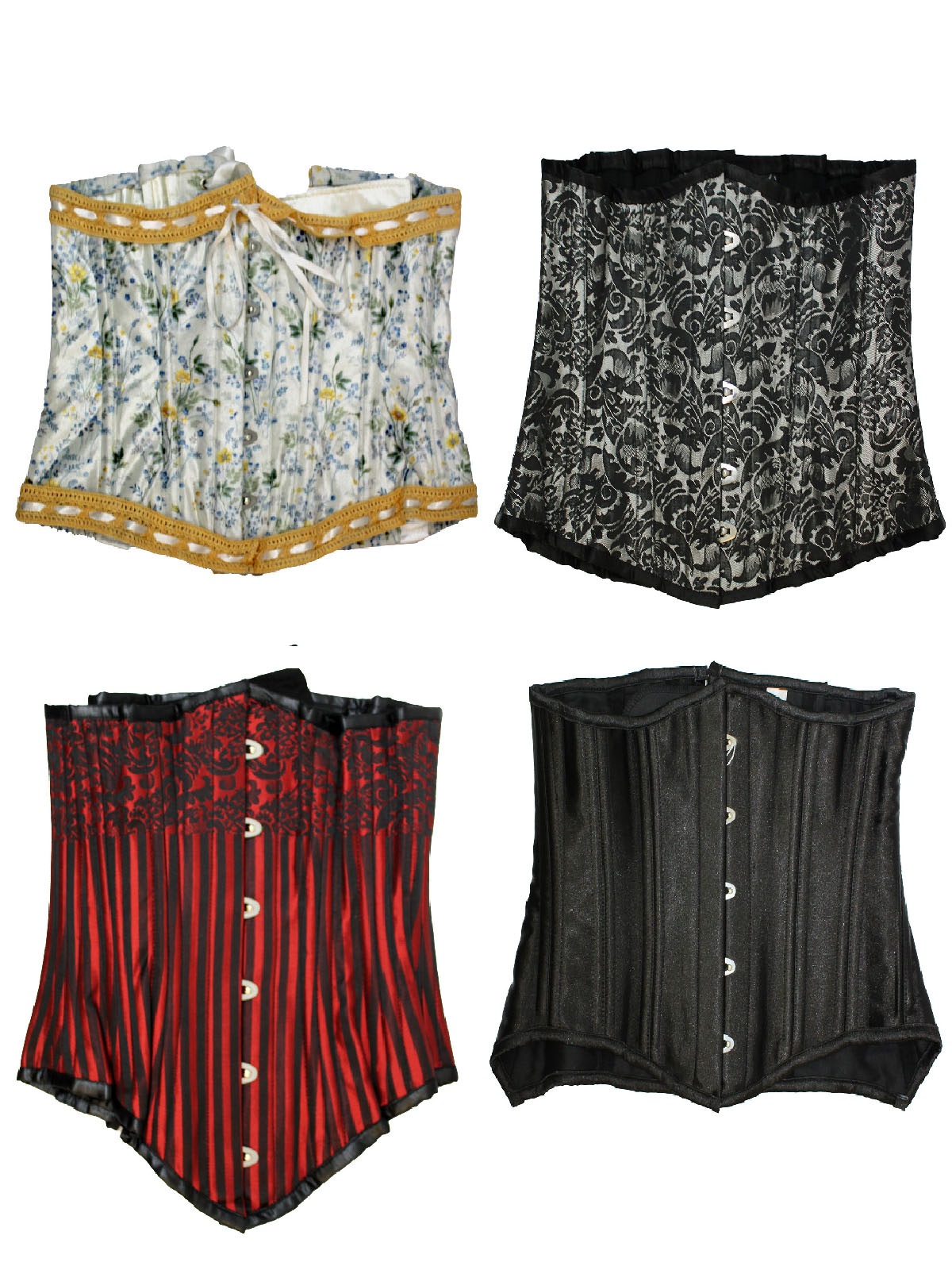 A mixed pack of corsets with a variety of styles, colors and lengths.