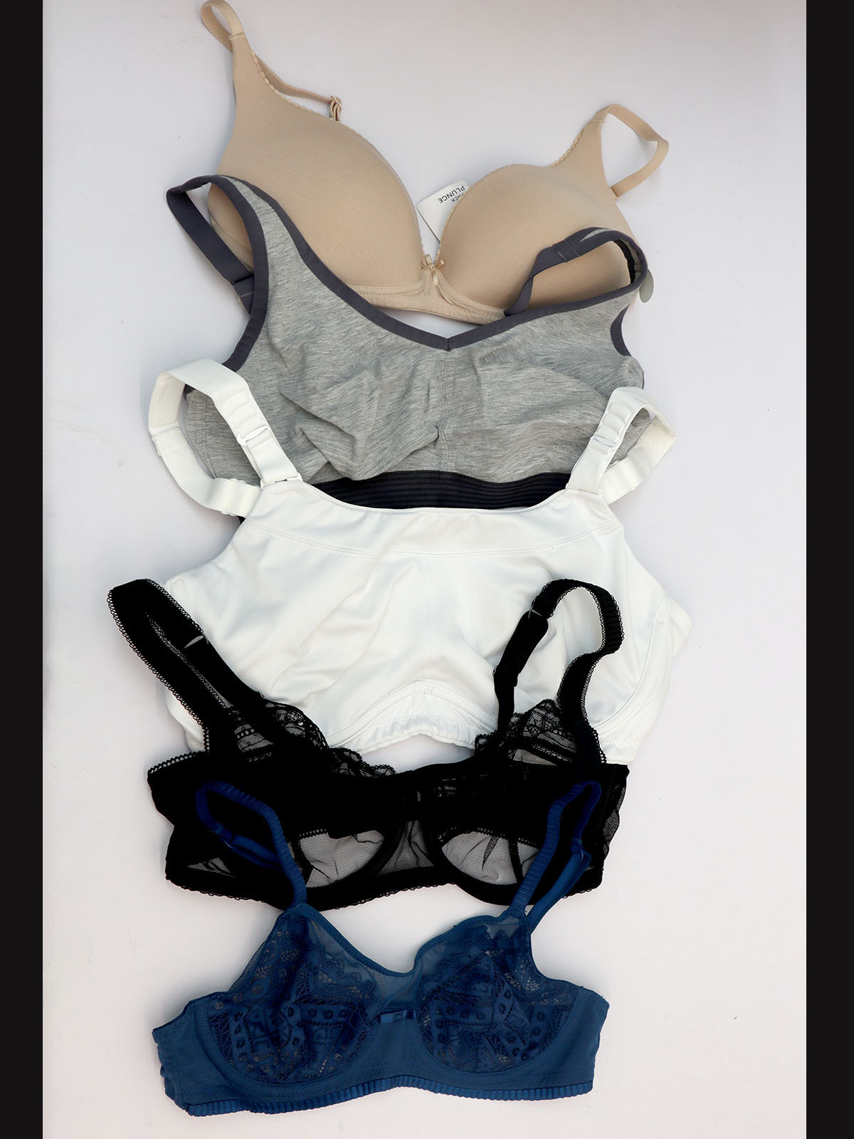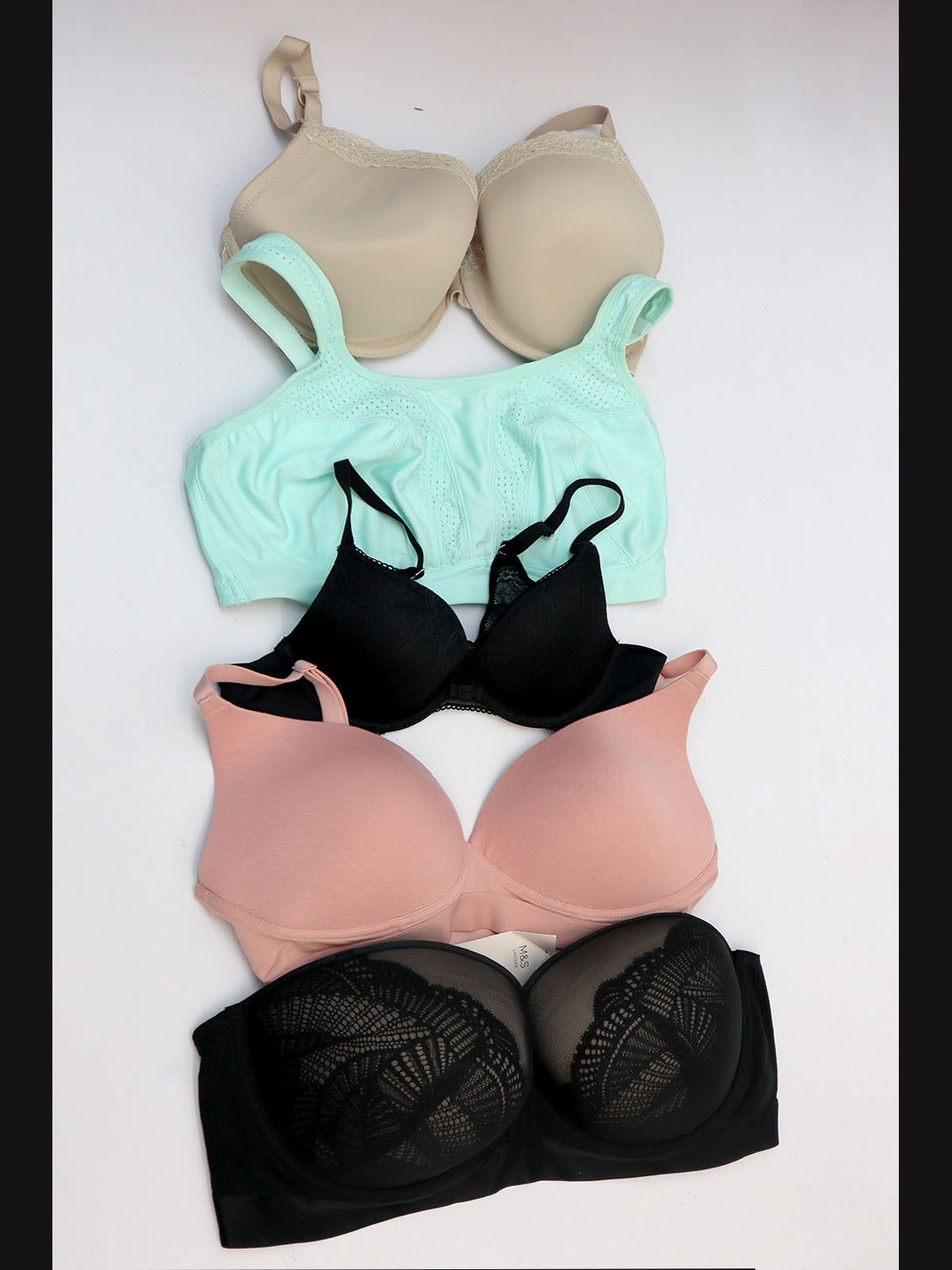 Assorted Wired & Non-Wired Bras A collection of women's bras, including various styles such as padded, push-up, underwire, and wireless designs in different colours.