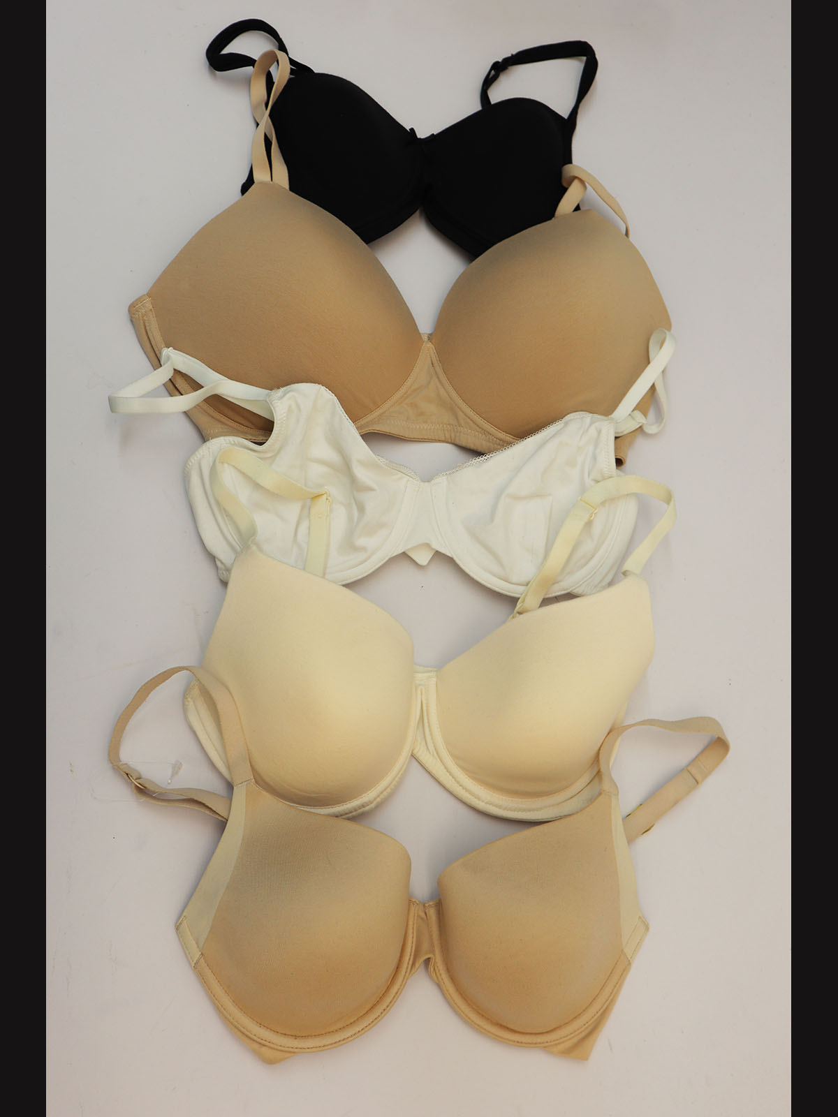 Assorted Wired & Non-Wired Bras A collection of padded and non-padded bras in various neutral colours and red. Wired and Under-wired.