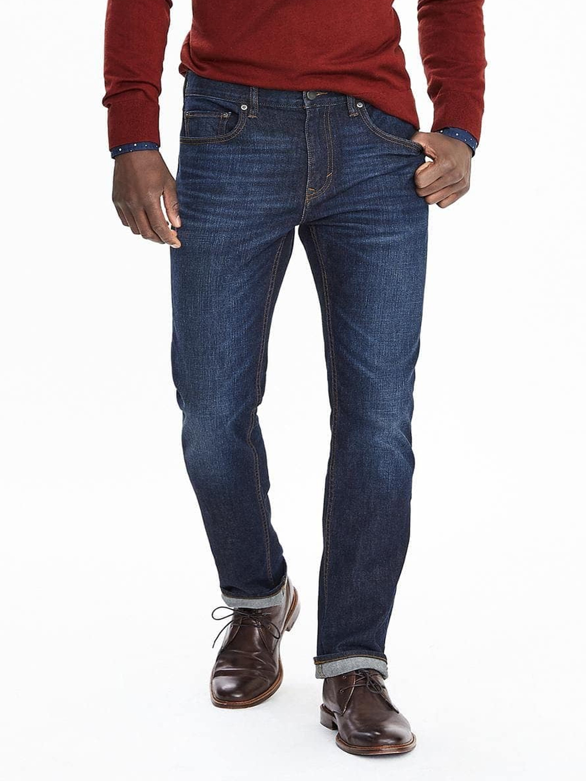 For a contemporary look that you’ll want to wear again and again, there’s no going wrong with these slim fit jeans for men. Below the waist with belt loops and pockets to the front and back.