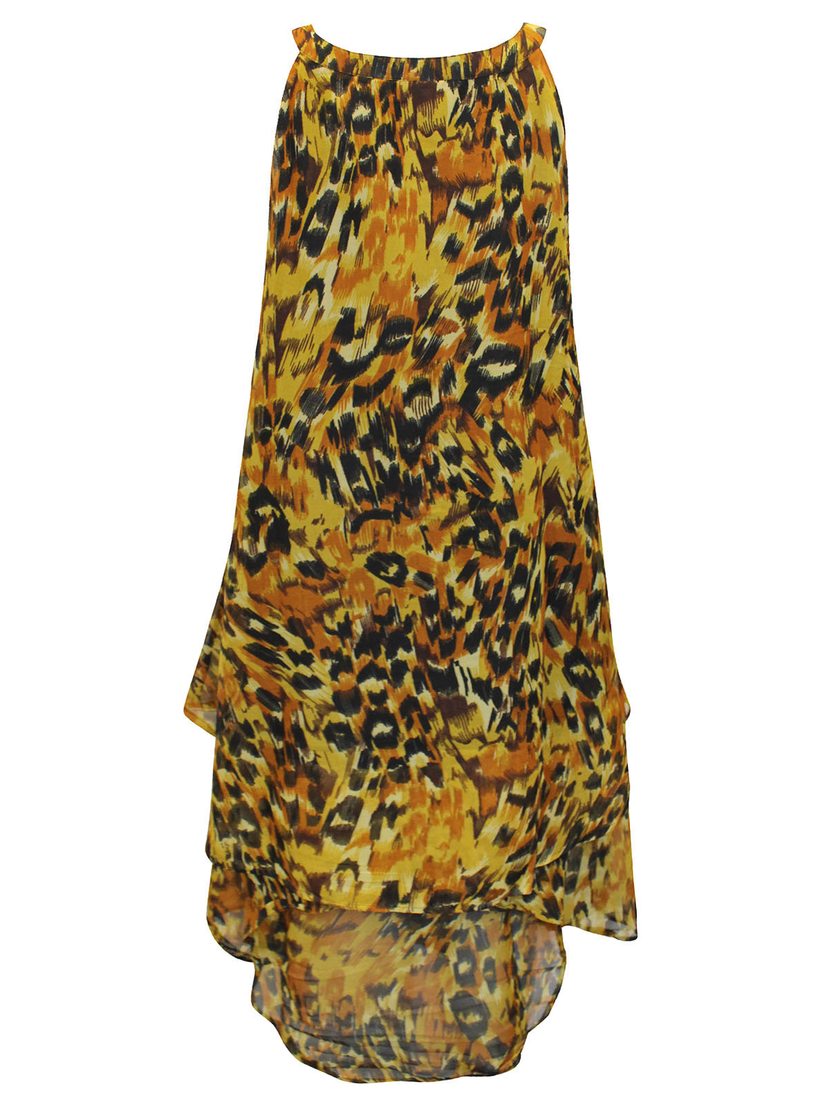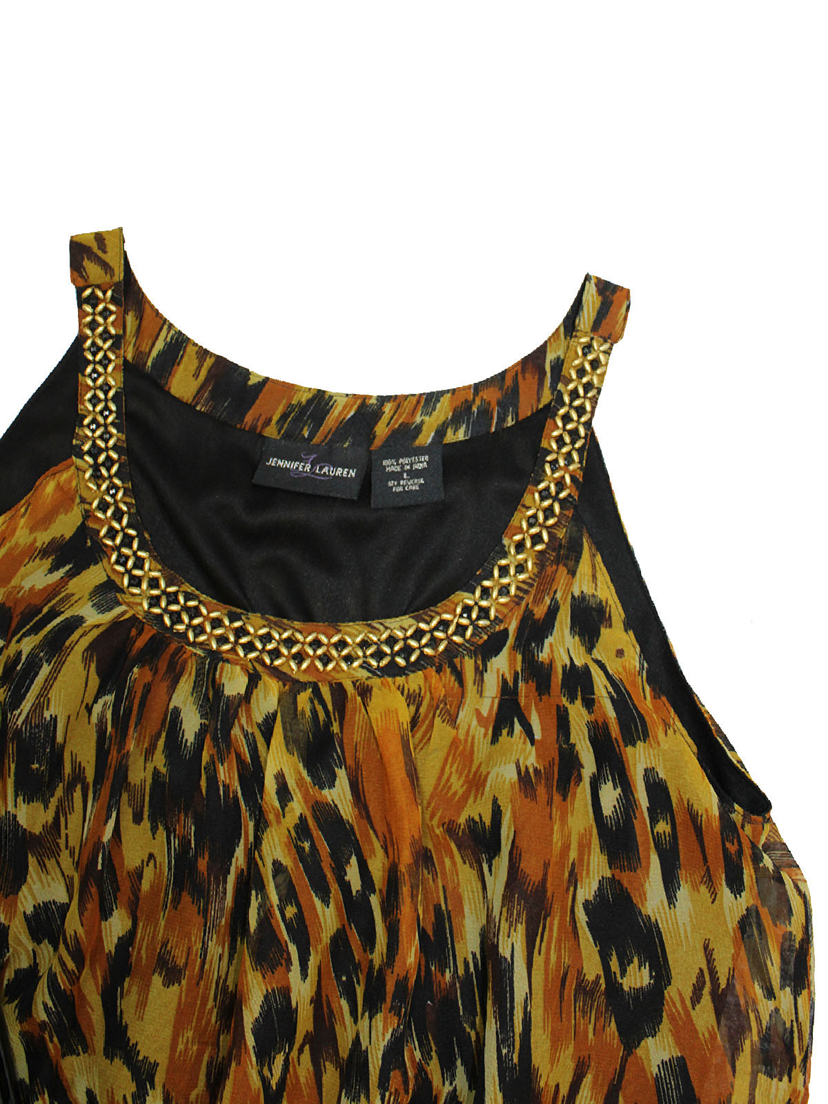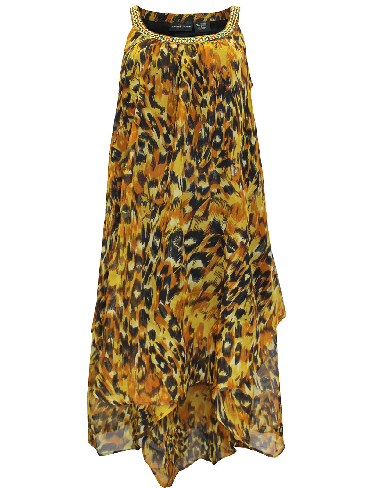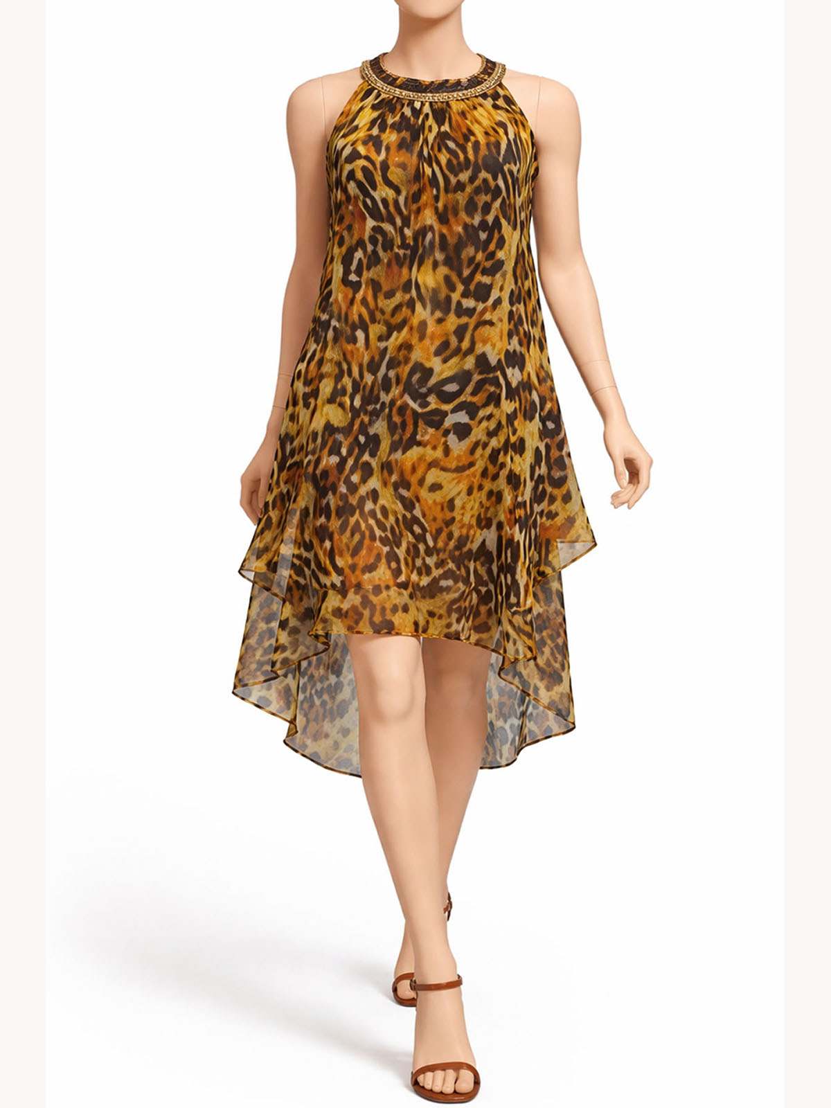 Sleeveless Embellished Animal Print Overlay Dress