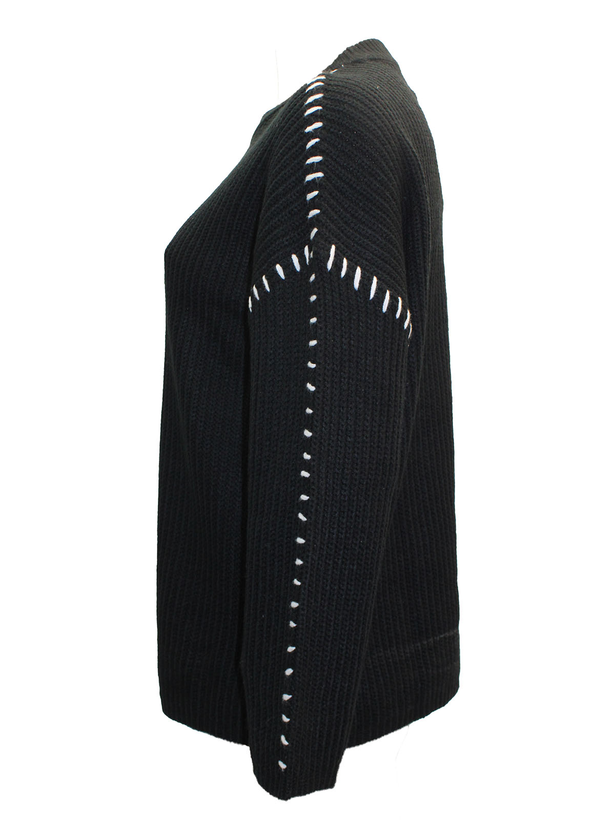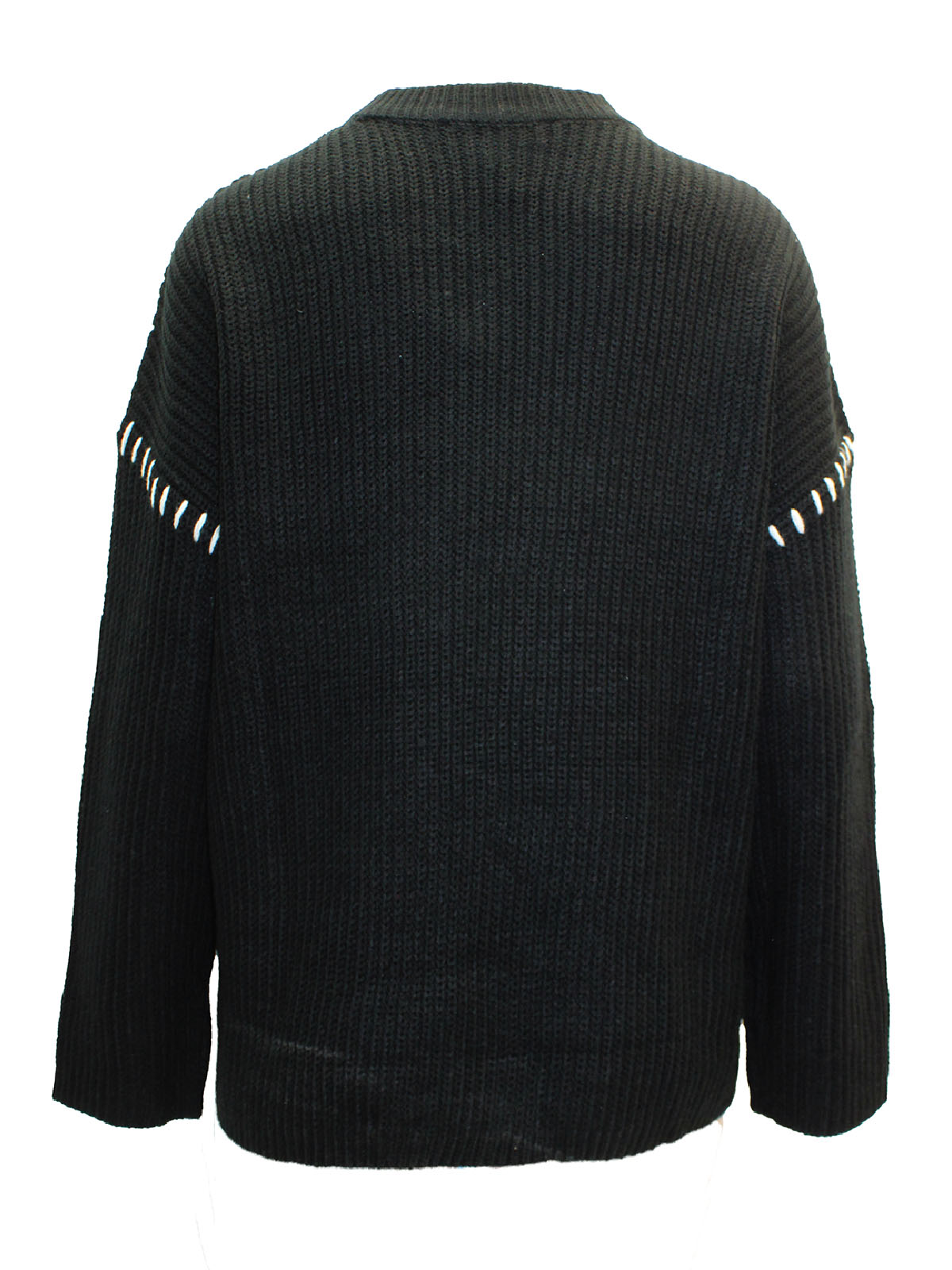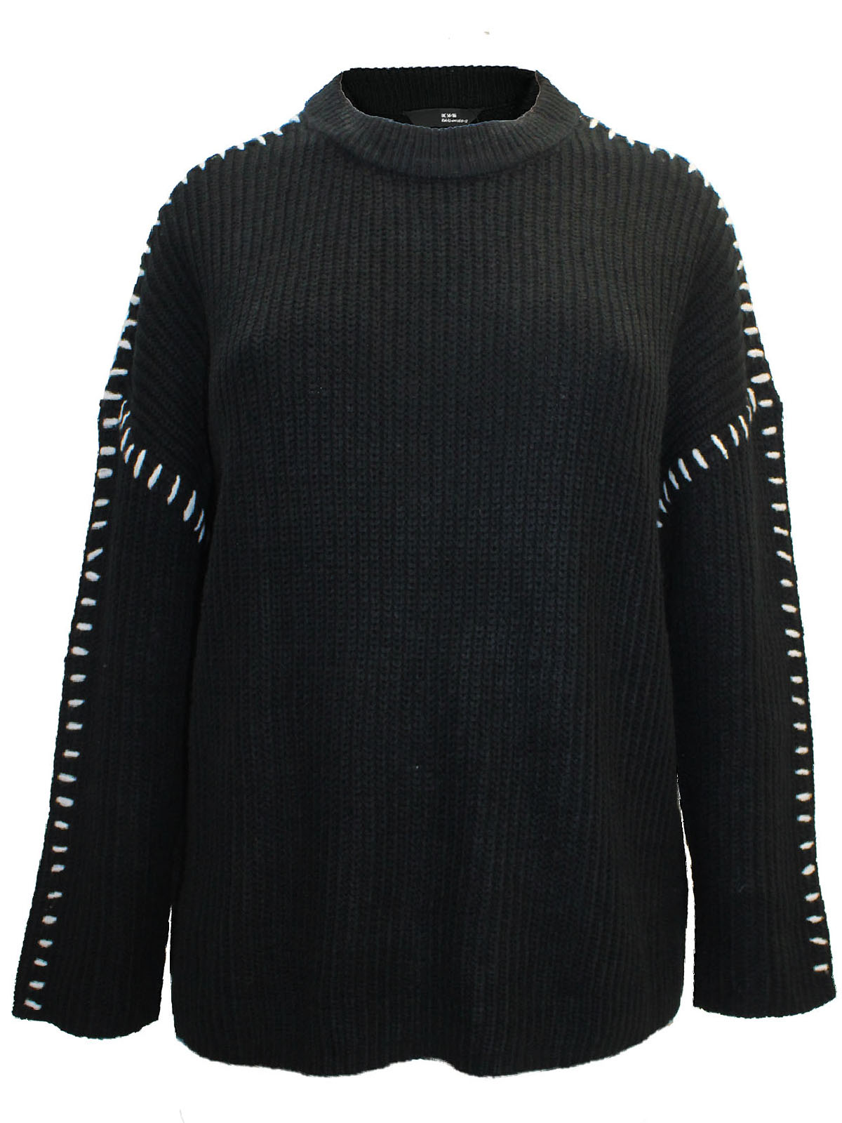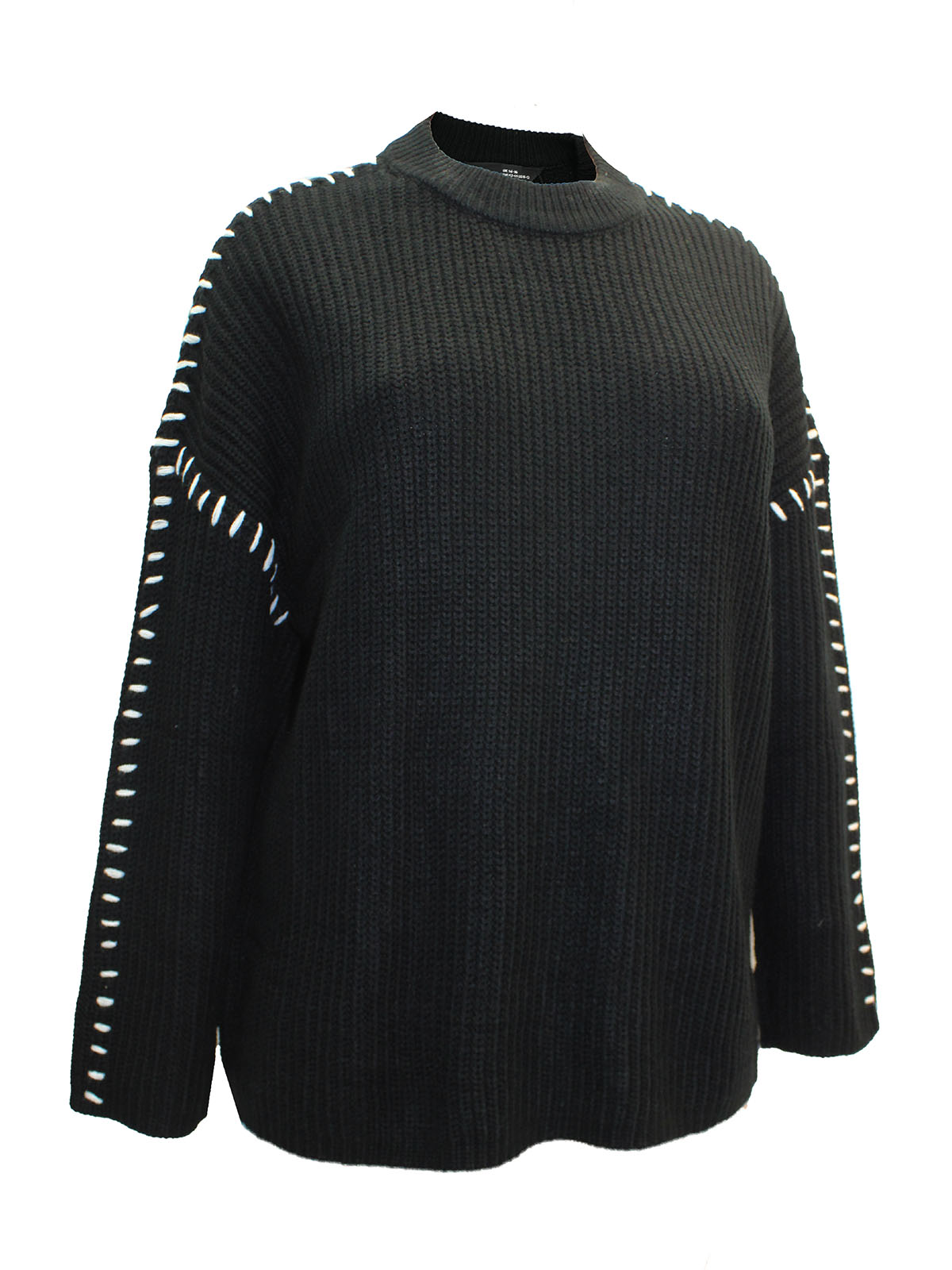 Upgrade your new season wardrobe with this must-have jumper. Made from a soft knitted fabric, it features a blanket stitch detail, long drop shoulder sleeves and a crew neckline. Length 28in.