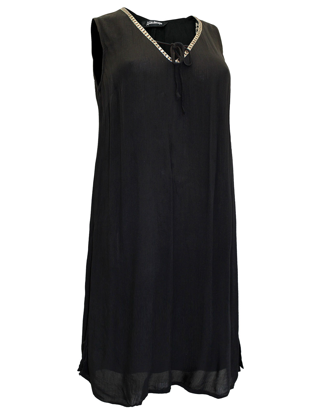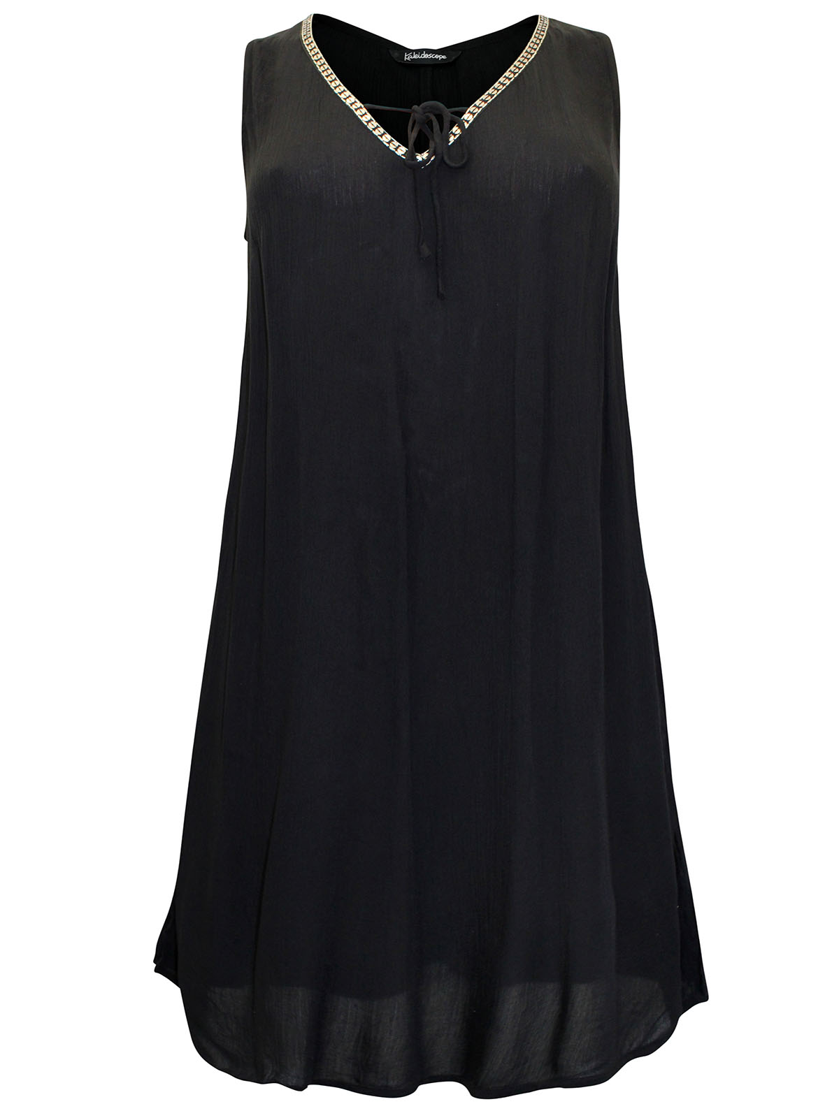 Injecting sophistication into Summer style, this cotton gauze midi is wonderfully lightweight and effortlessly stylish. Deep side splits ensure a fluid silhouette, while the embellished neckline and tie neckline add extra interest. A must-have Summer dress. Length 41in.