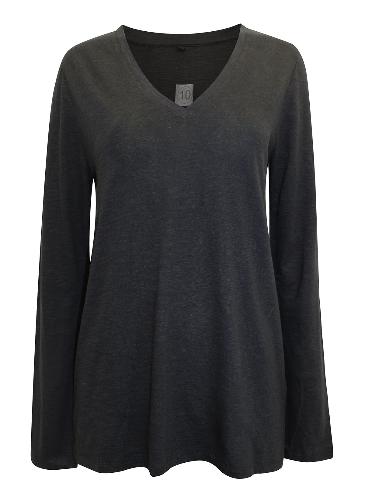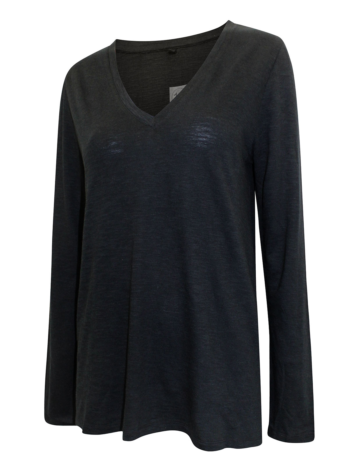 Cotton Rich V-Neck Long Sleeve T-Shirt
