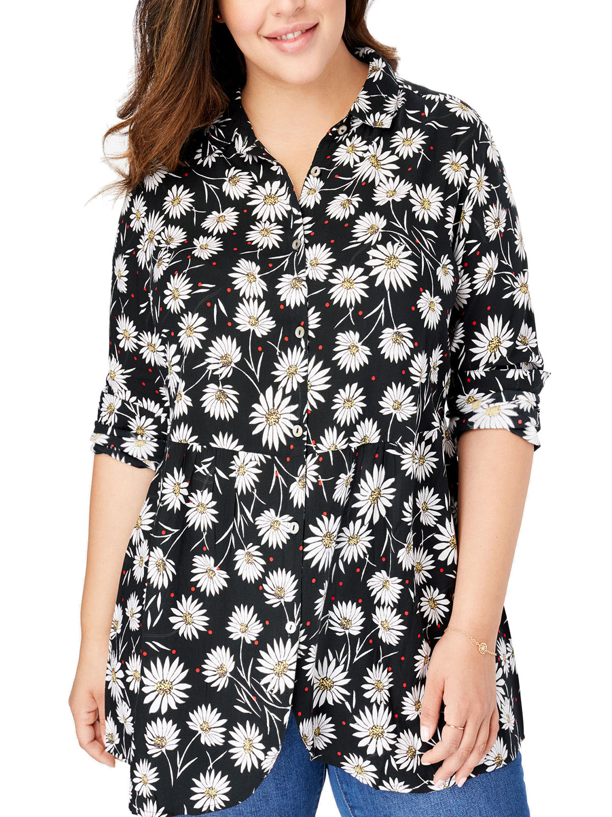 Daisy Print Hanky Hem Blouse