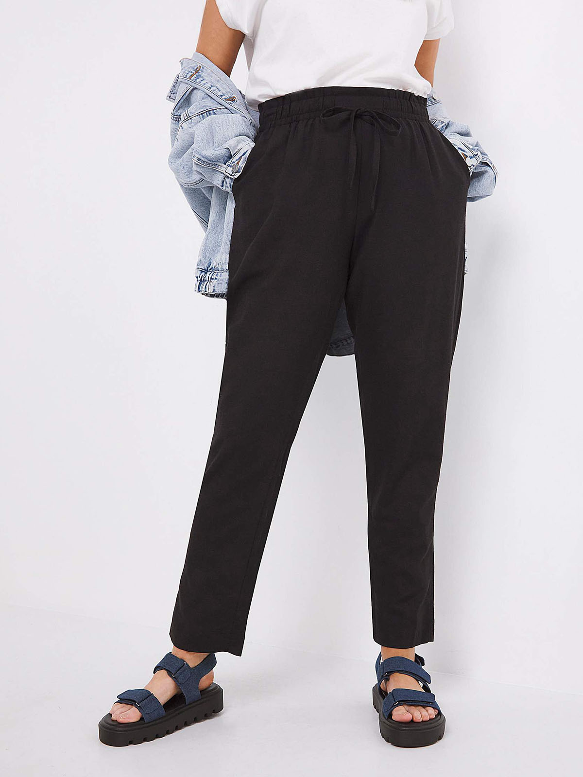 Linen trousers are an essential for every wardrobe. Easy to wear and super comfortable, these trousers have a tapered leg shape, a tie waist drawcord with pockets. Lengths; Short 27in, Regular 29in, Long 31in.