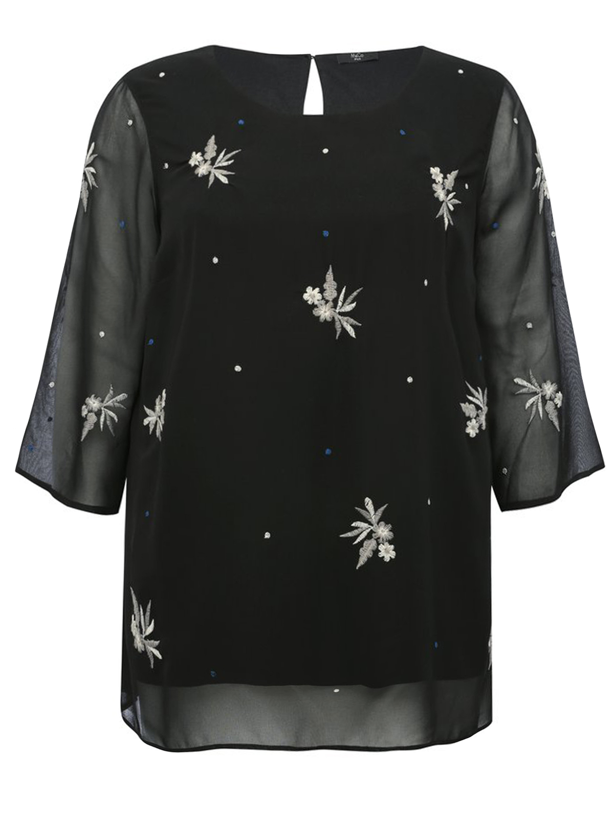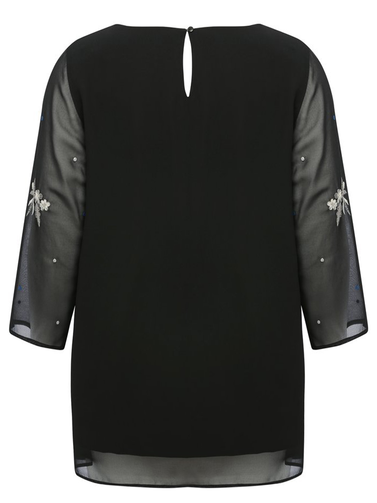 Embroidered 3/4 Sleeve Chiffon Blouse