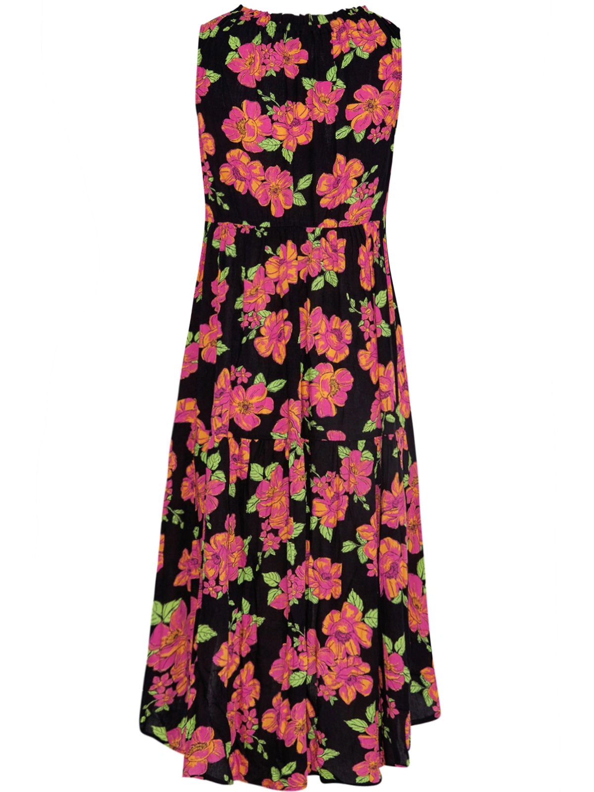 Effortlessly elegant, this dress is the perfect option for your next occasion. Made from a comfortable woven fabric, it features a floral print with a high neck and high low hem. Length 44-52in.