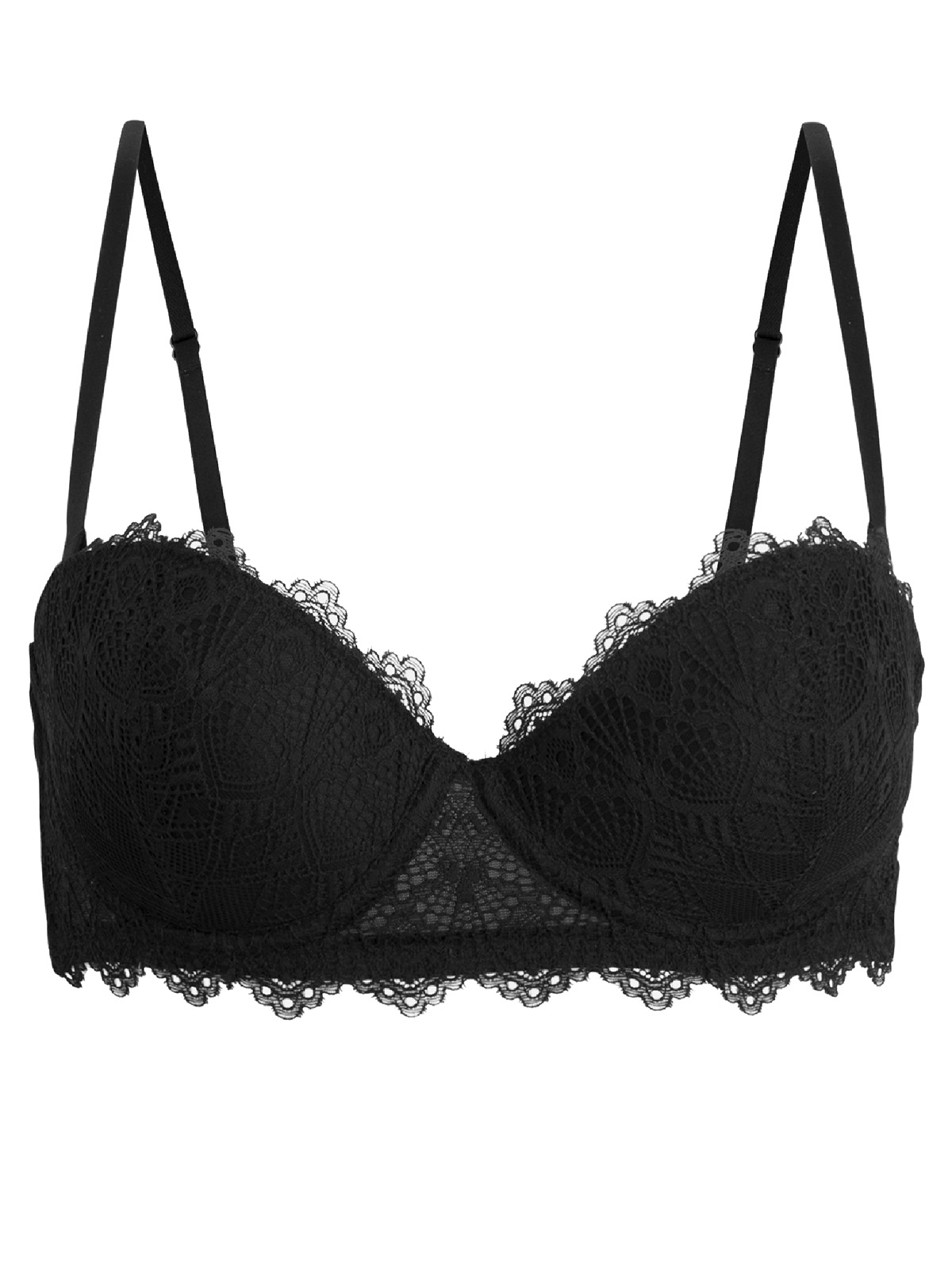 Classic geometric lace bra with removable straps. Underwired with light padding. Adjustable straps and back fastening.