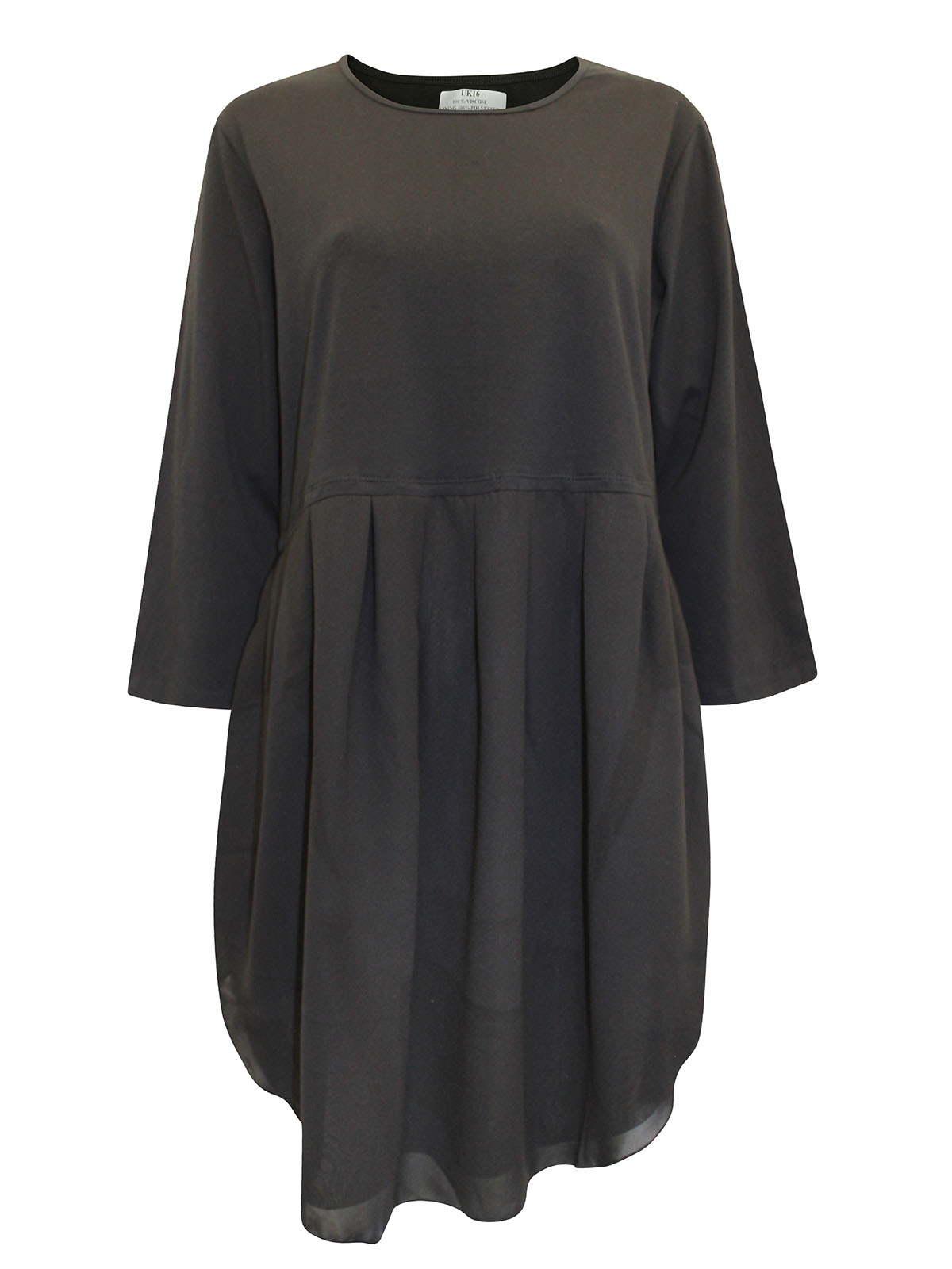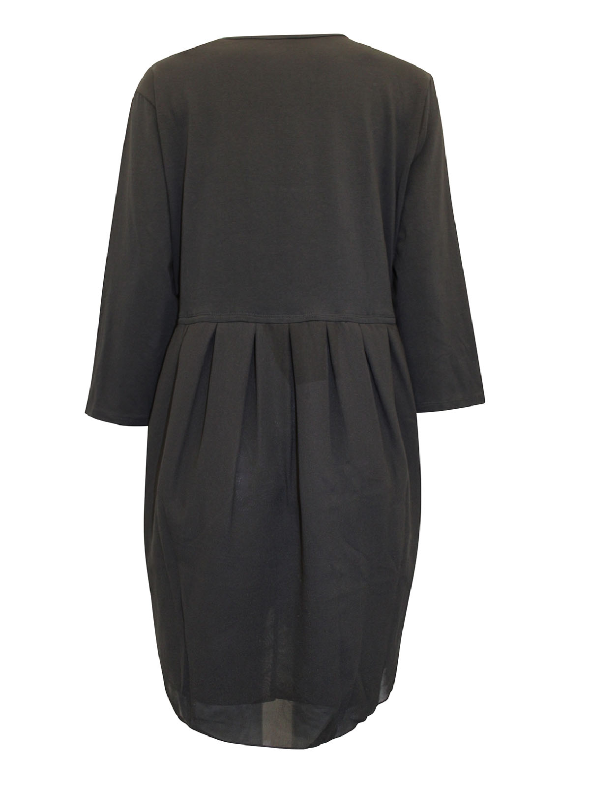 This top is the upgraded essential your collection needs. Featuring a round neck, 3/4 length sleeves and georgette overlay with a curved hem. Length 36in.