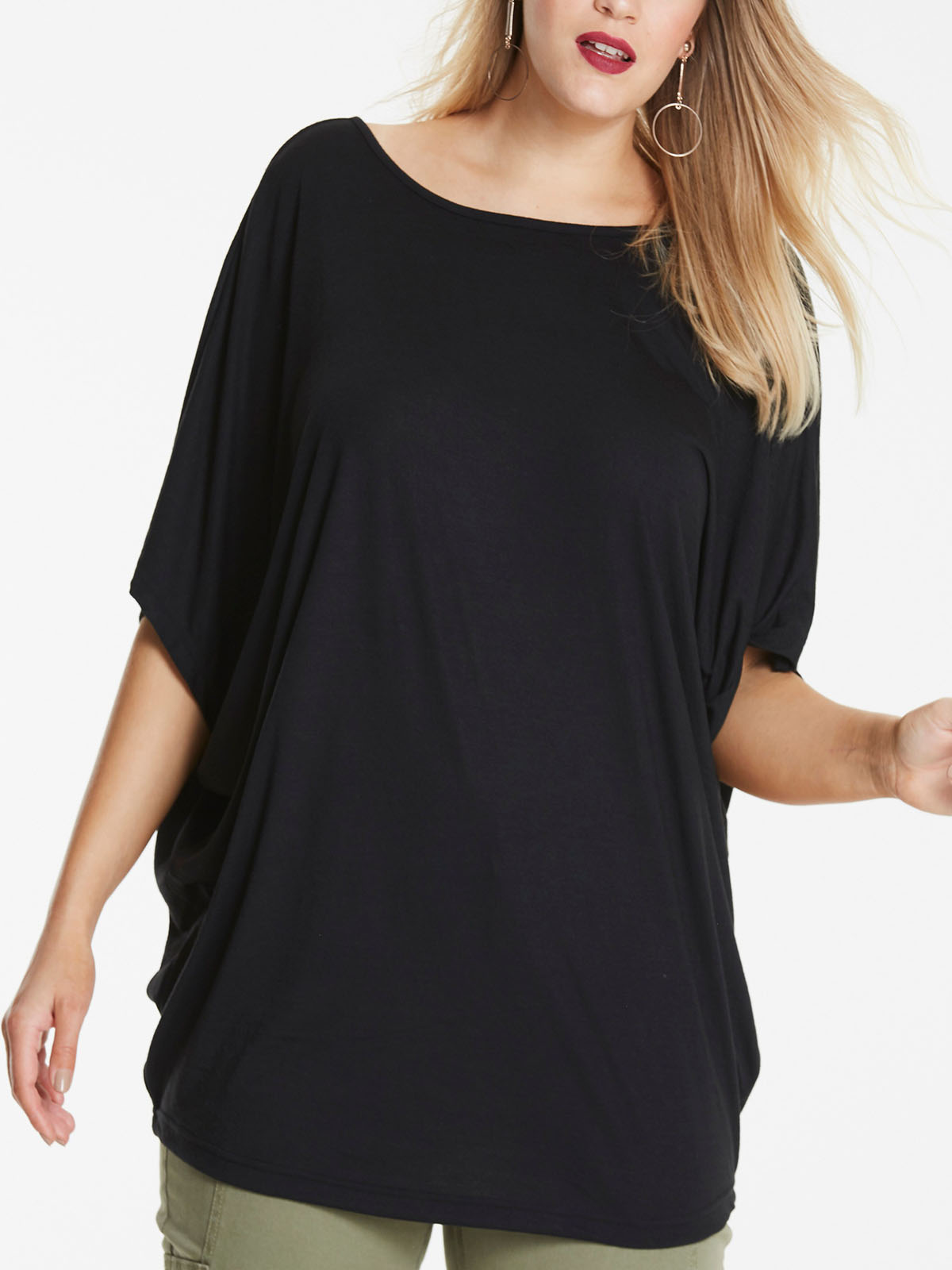 Make sure room in your wardrobe for this new-in boxy top. Made from a comfortable jersey fabric, it features a scoop neckline and shorts sleeves.