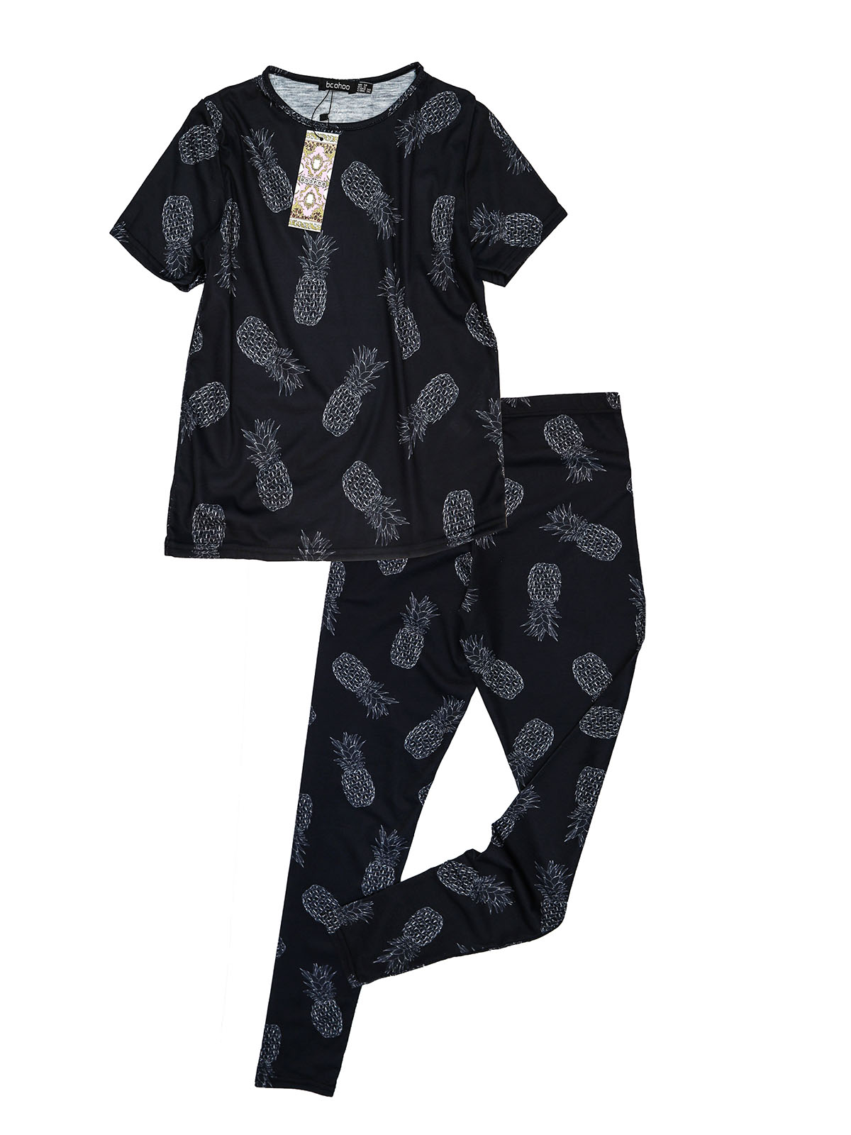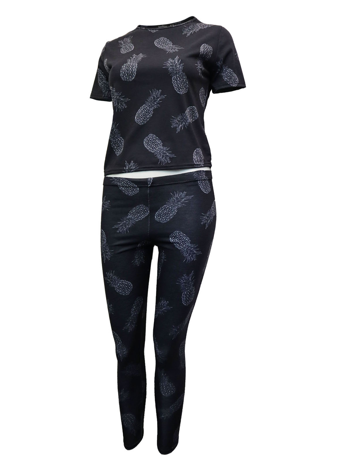 Black Pineapple print Leggings Pyjama Set - Size 6 to 16