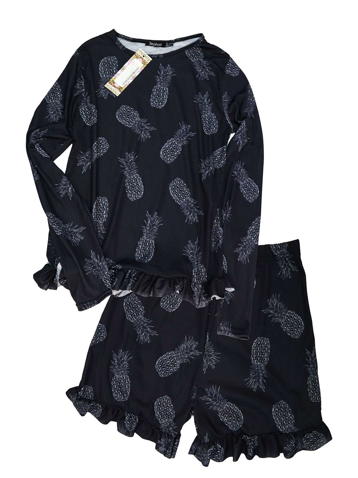 Pineapple Sketch Print Frill Hem PJ Short Set